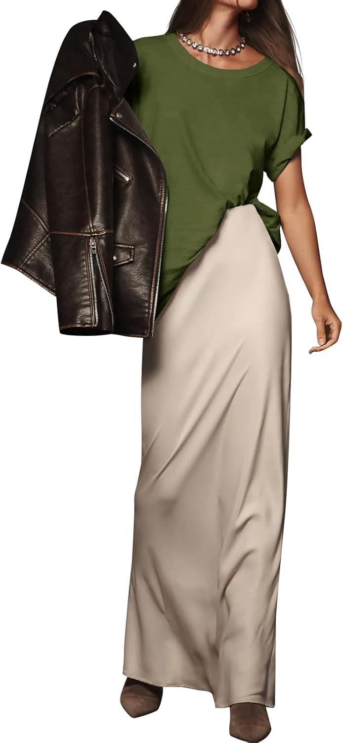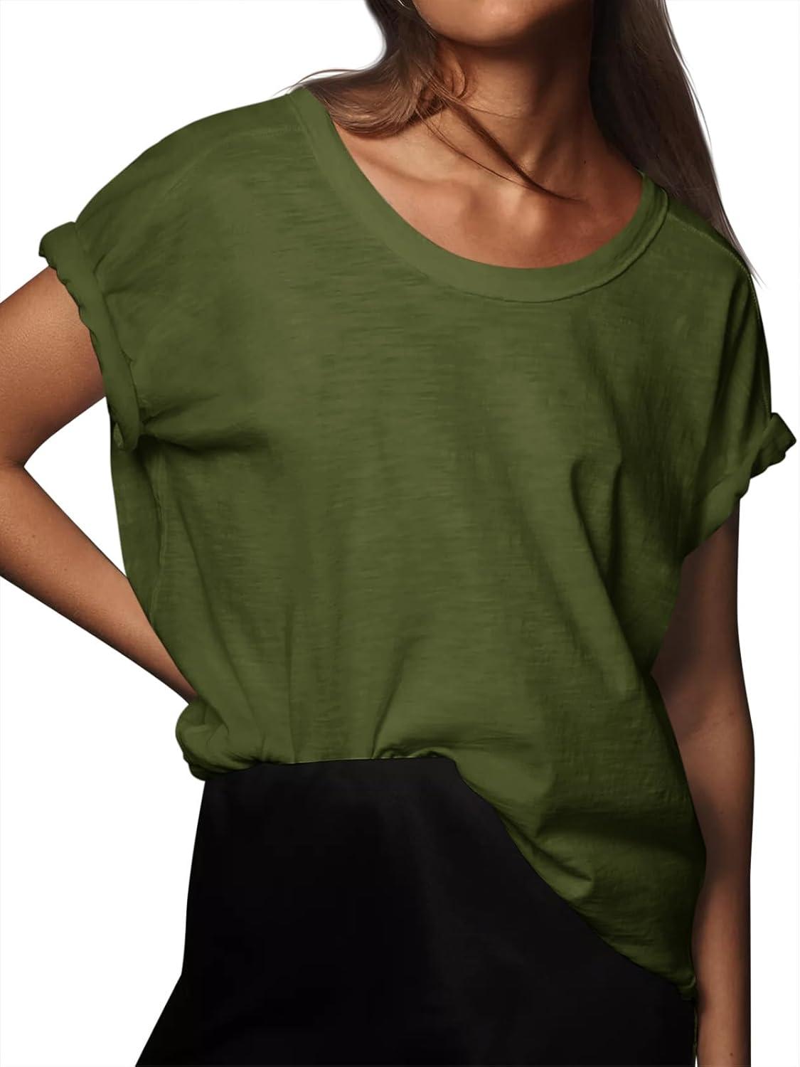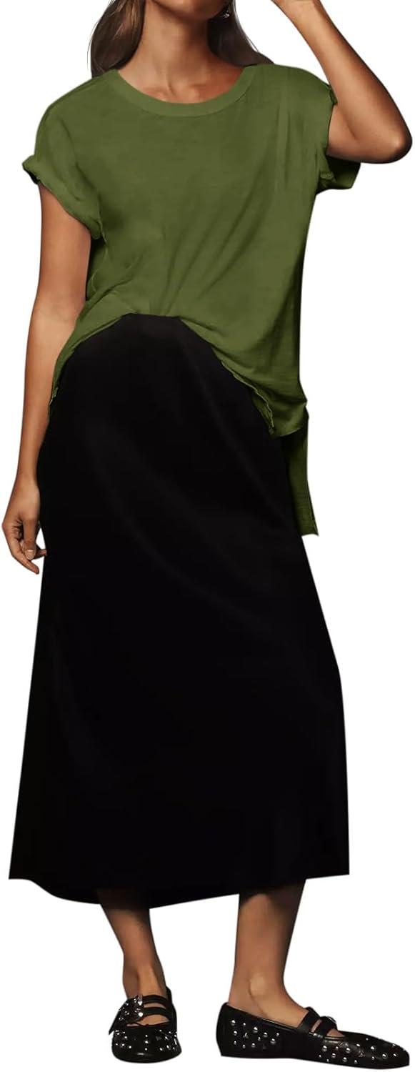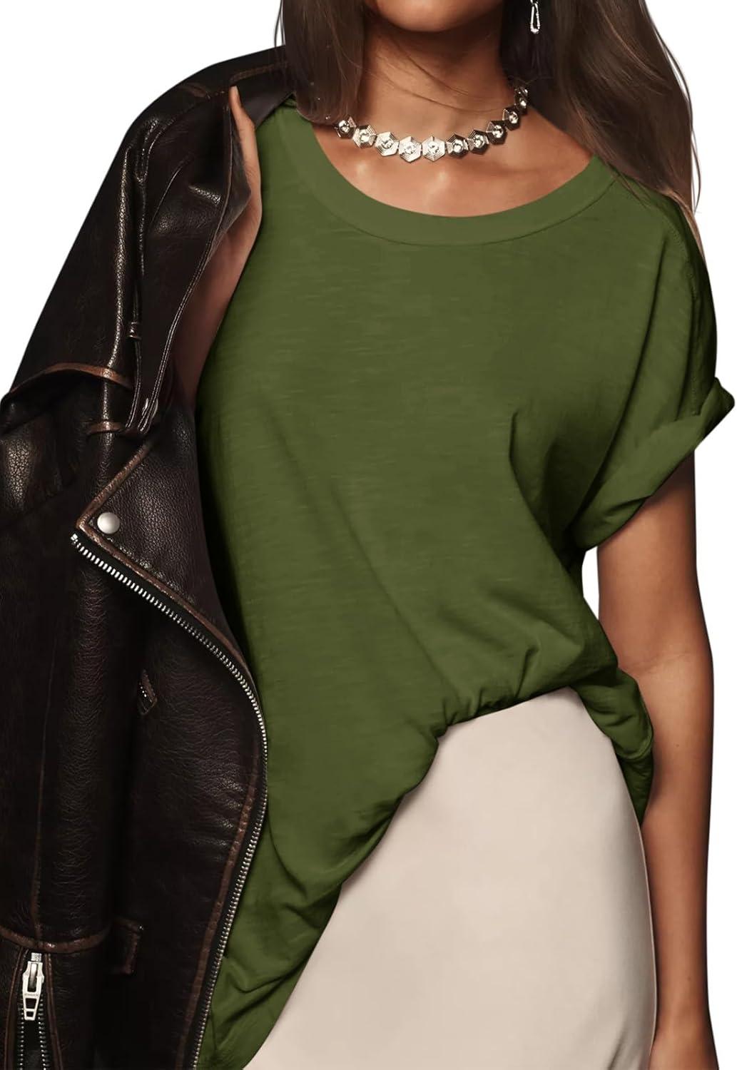 Tankaneo Womens Oversized Short Sleeve T Shirts Summer Casual Crew Neck Tunic Tops Loose Fit Basic Side Split Tees(Army Green)