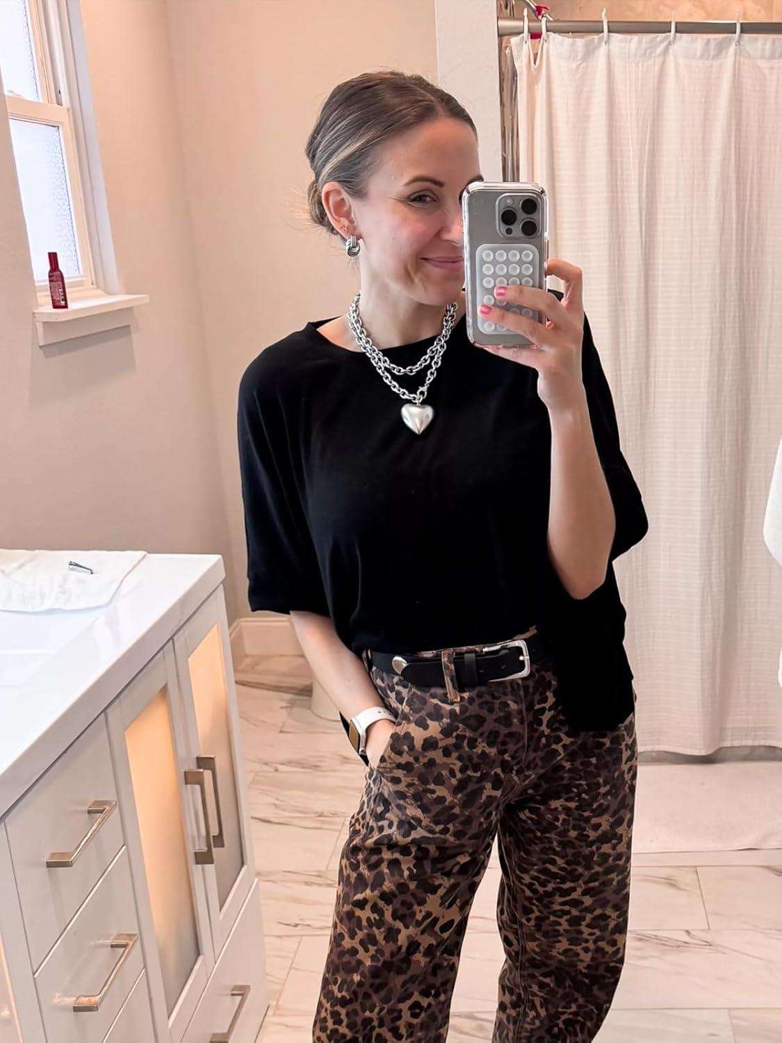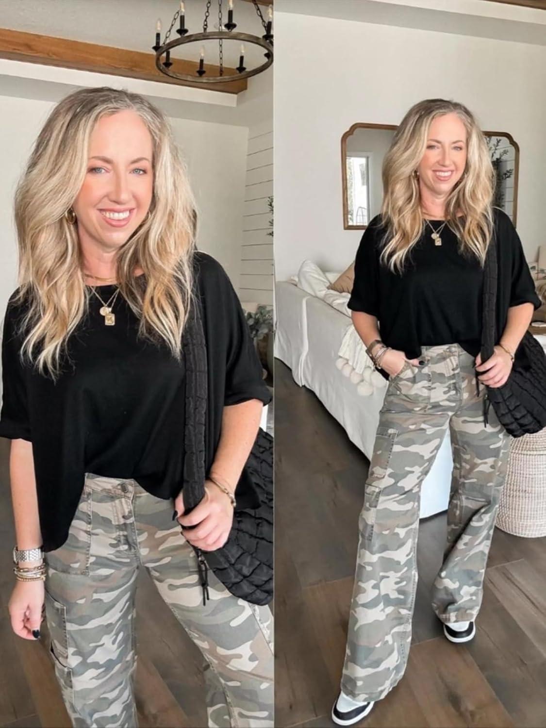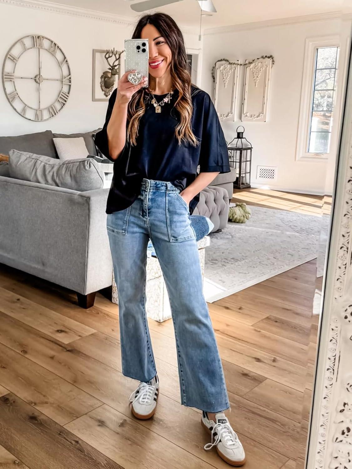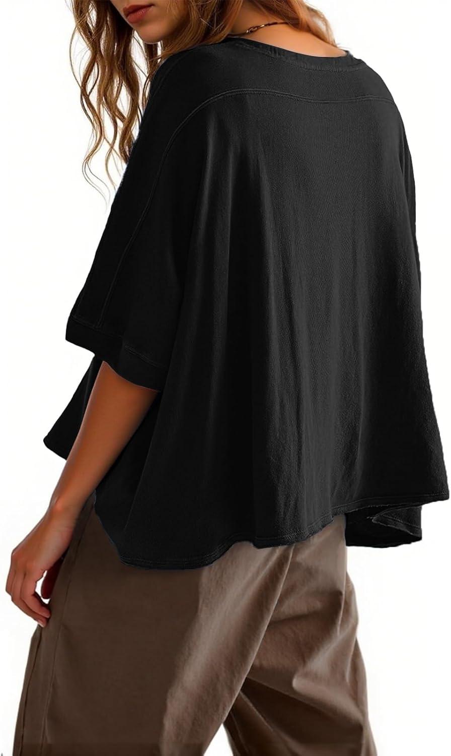 Tankaneo Womens Oversized T-Shirts Cropped Summer Casual Short Sleeve Loose Fit Tee Tops(Black)