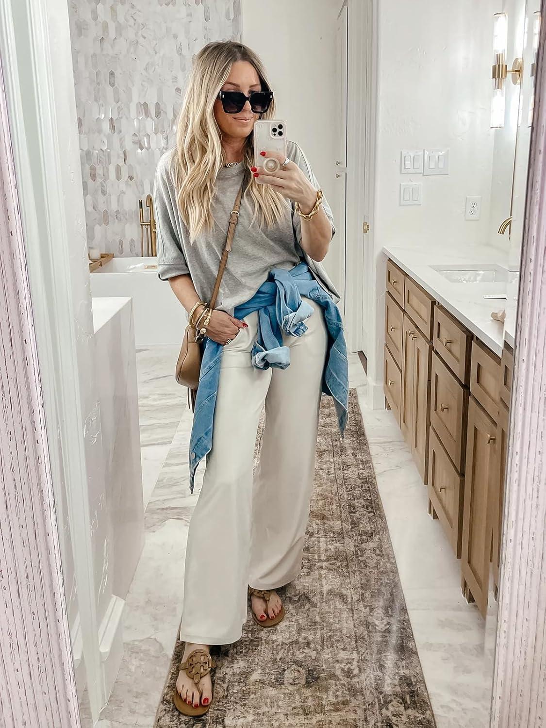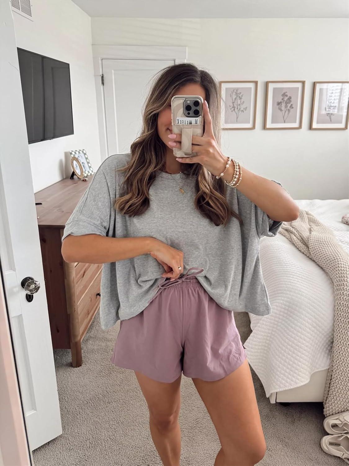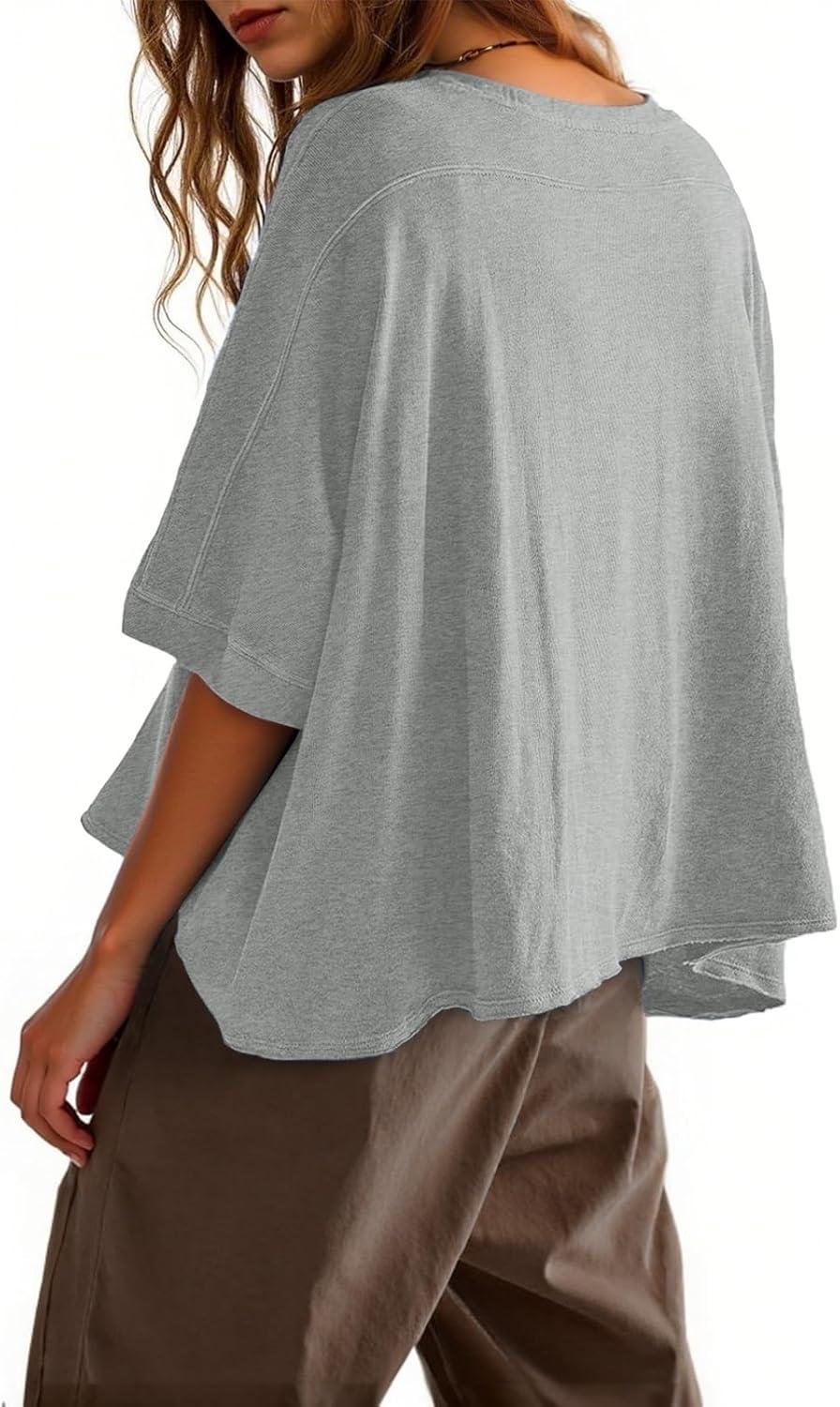 Tankaneo Womens Oversized T-Shirts Cropped Summer Casual Short Sleeve Loose Fit Tee Tops(Light Grey)