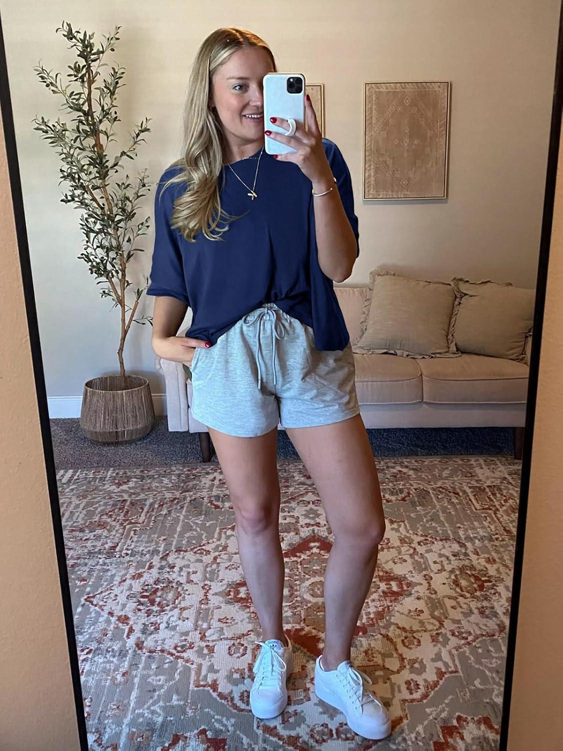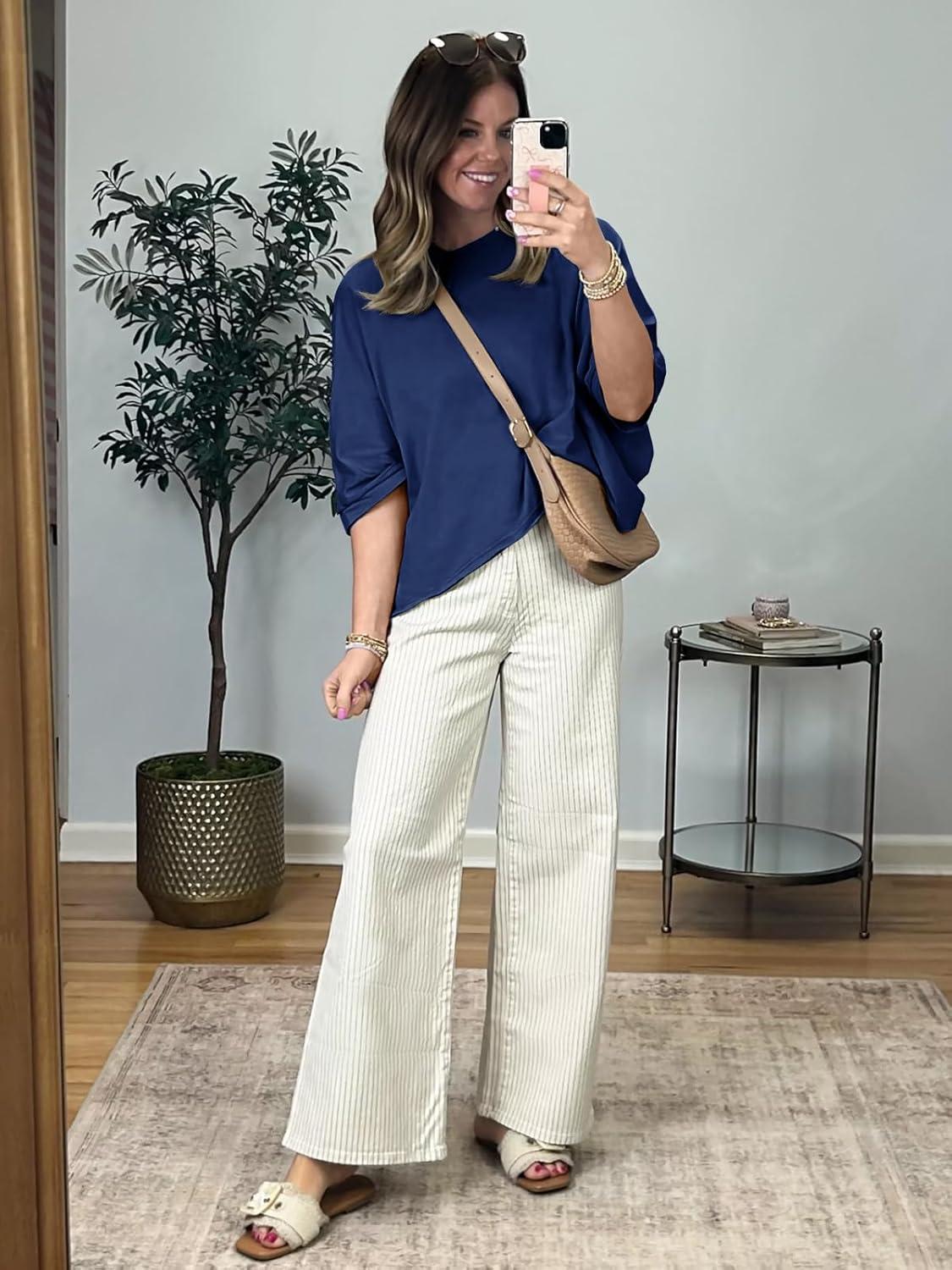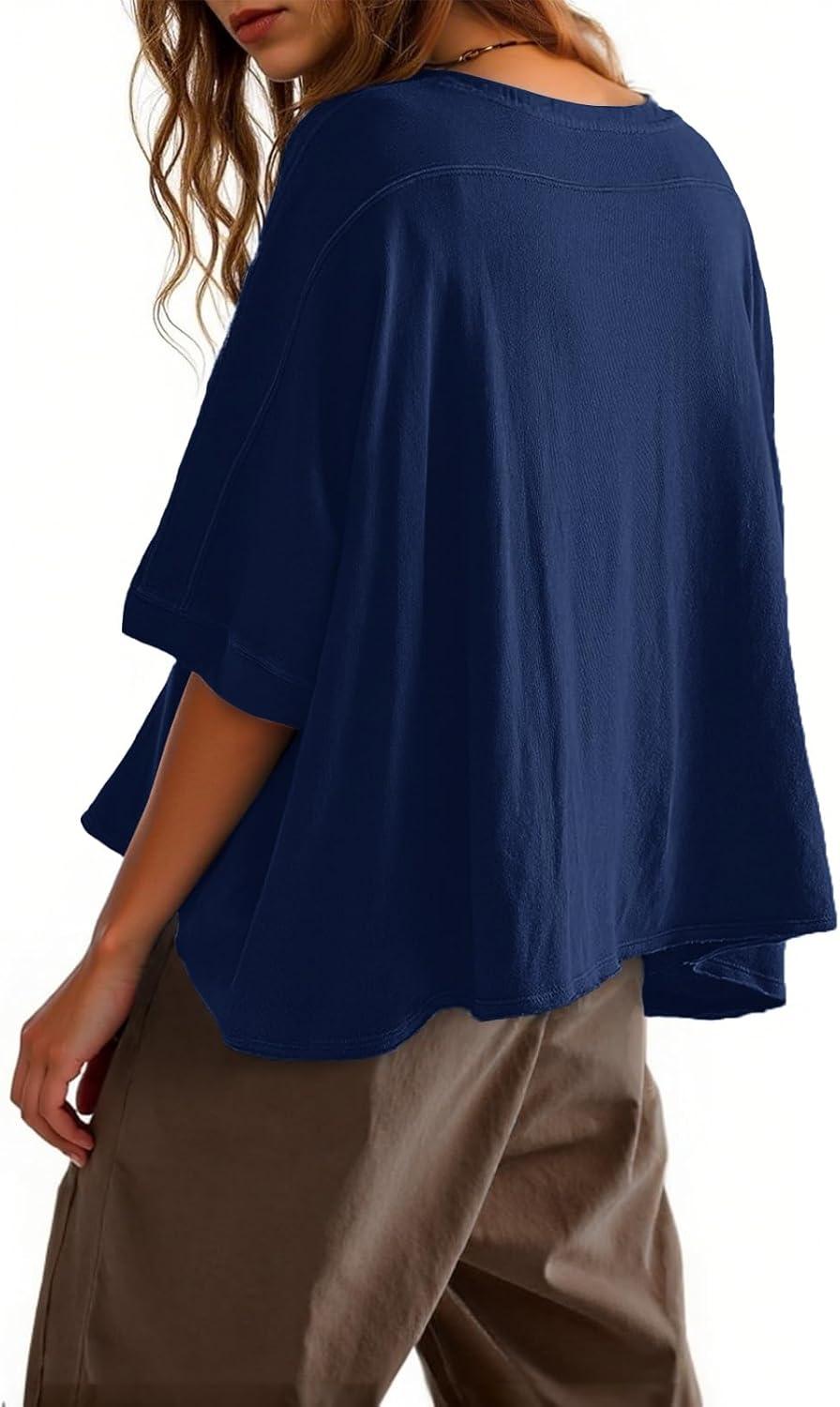 Tankaneo Womens Oversized T-Shirts Cropped Summer Casual Short Sleeve Loose Fit Tee Tops(Navy)