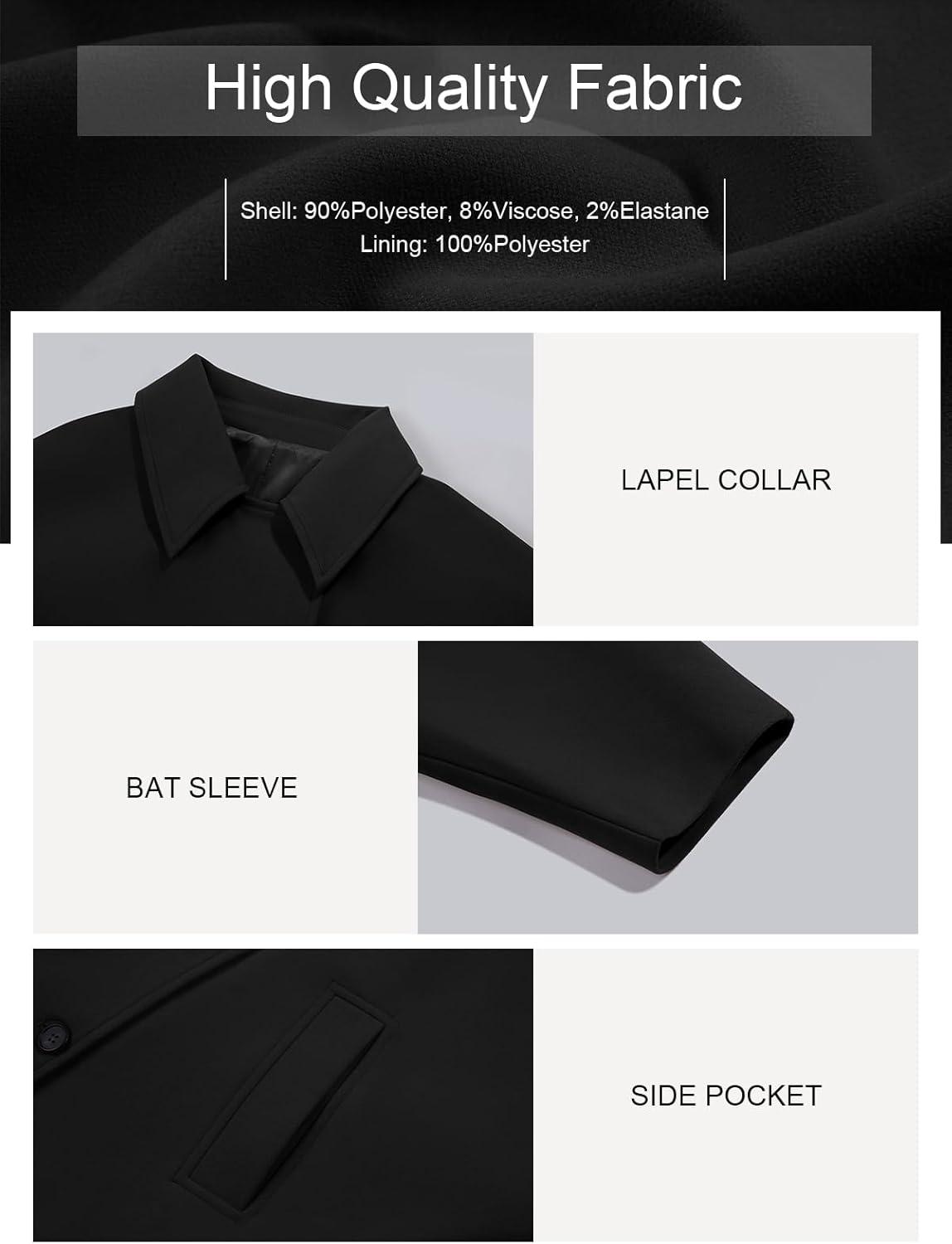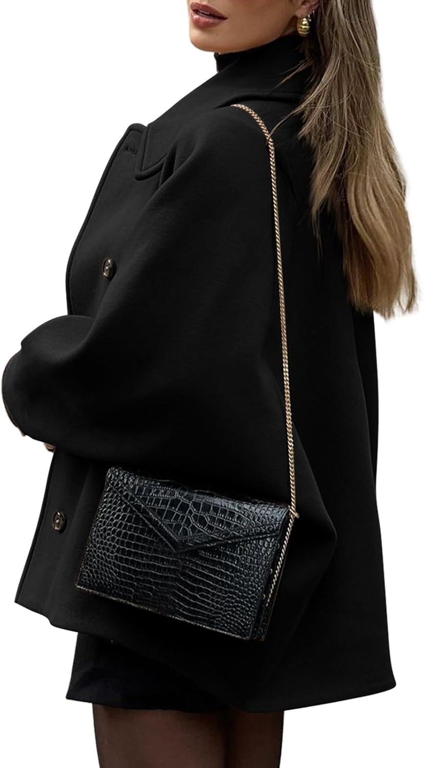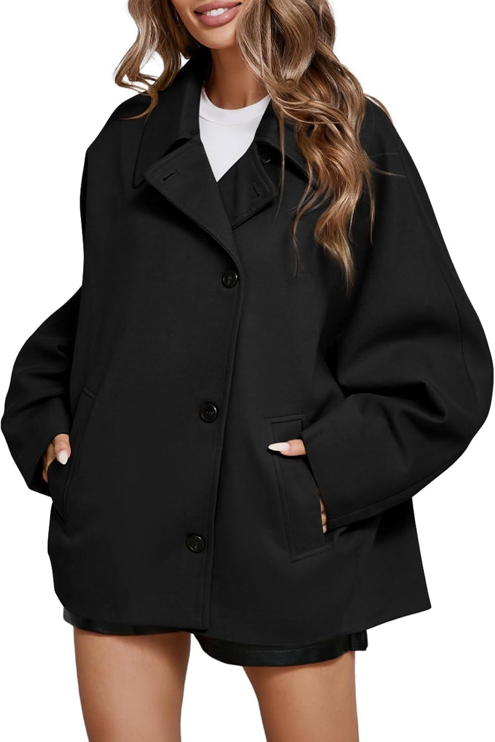 Tankaneo Womens Pea Coats Classic Notch Lapel Single Breasted Oversized Fall Winter Jackets Outerwear(Black)