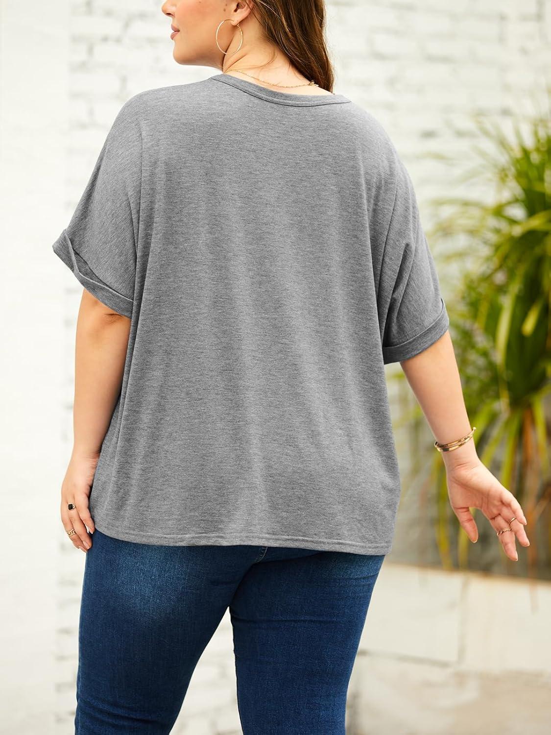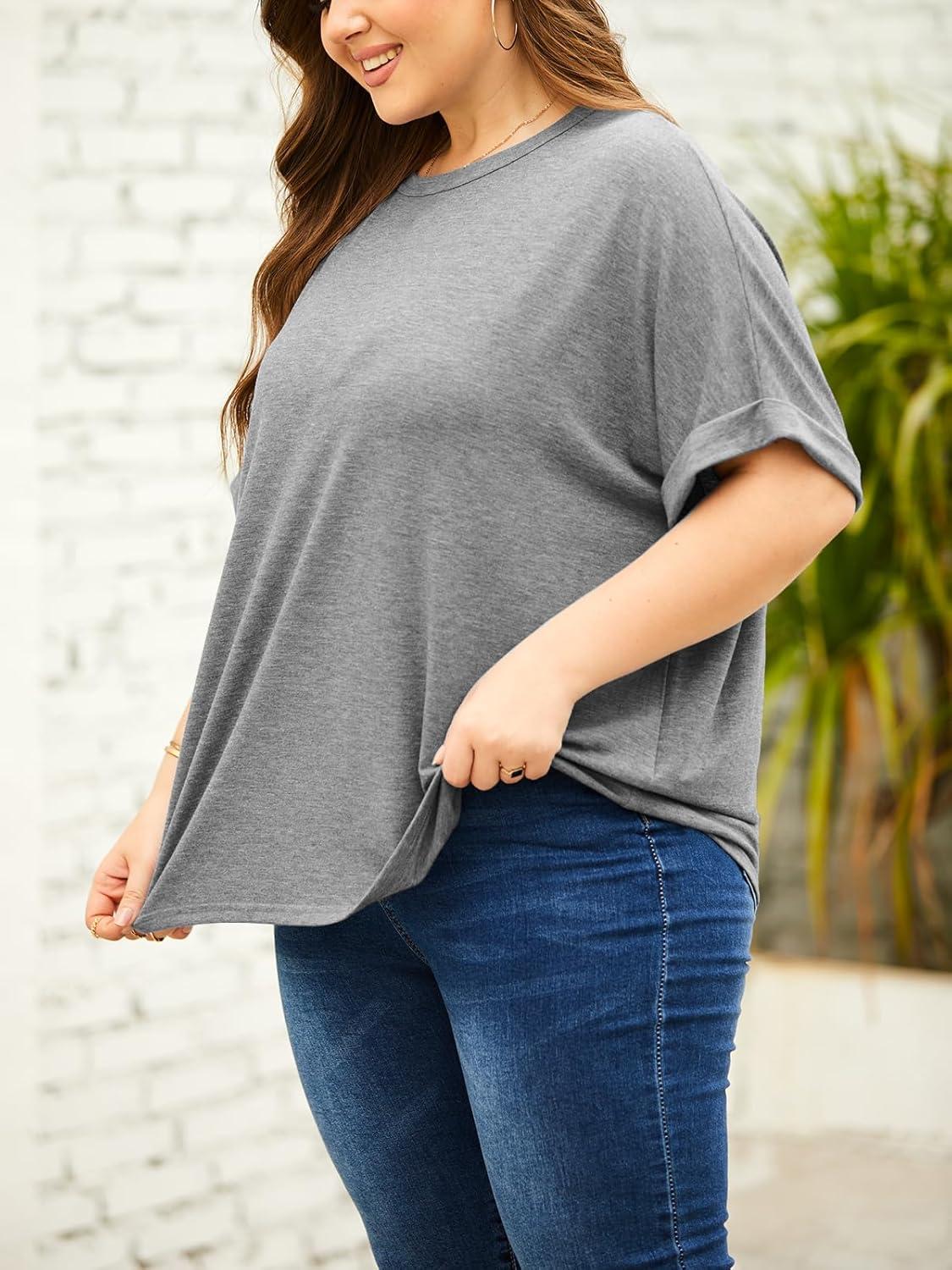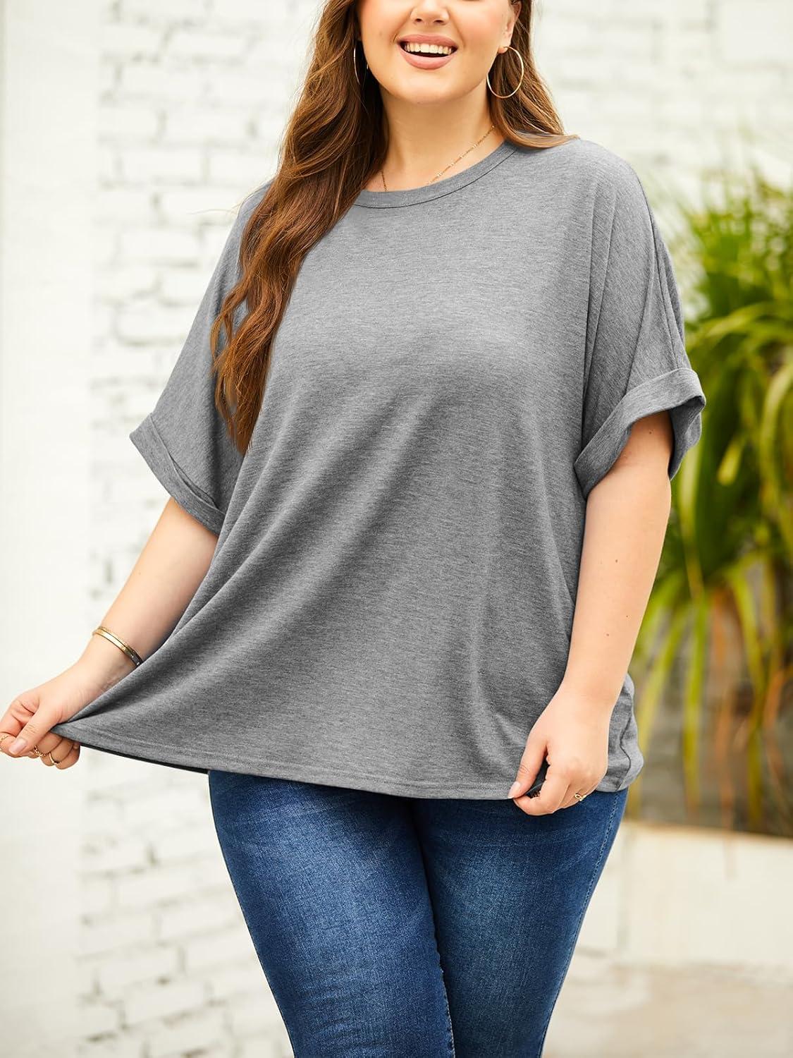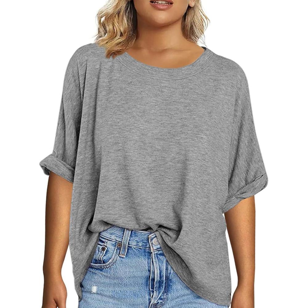 Tankaneo Women’s Plus Size Short Sleeve T Shirts Summer Half Sleeve Crew Neck Oversized Tees Casual Loose Fit Tunic Tops(Grey)