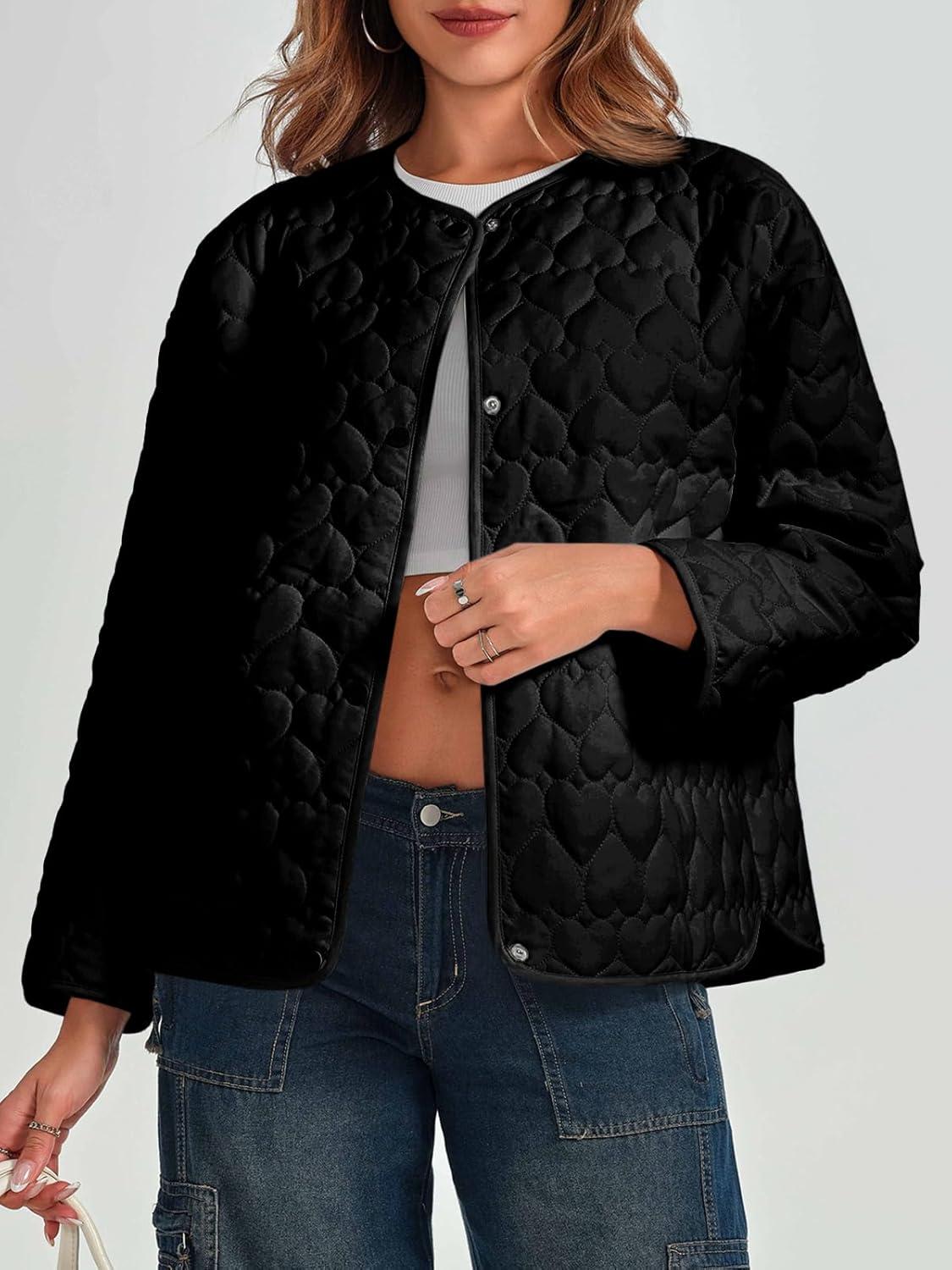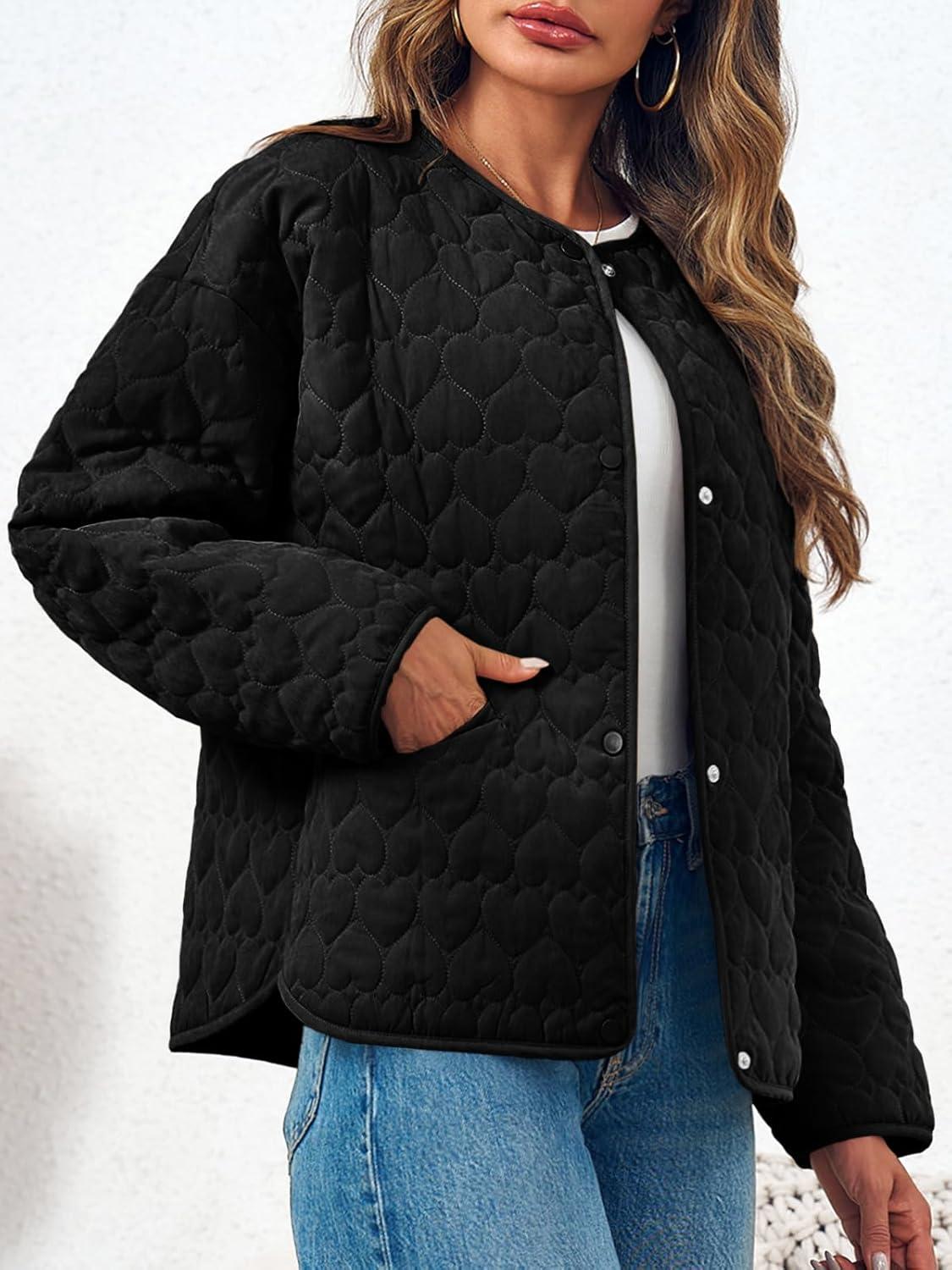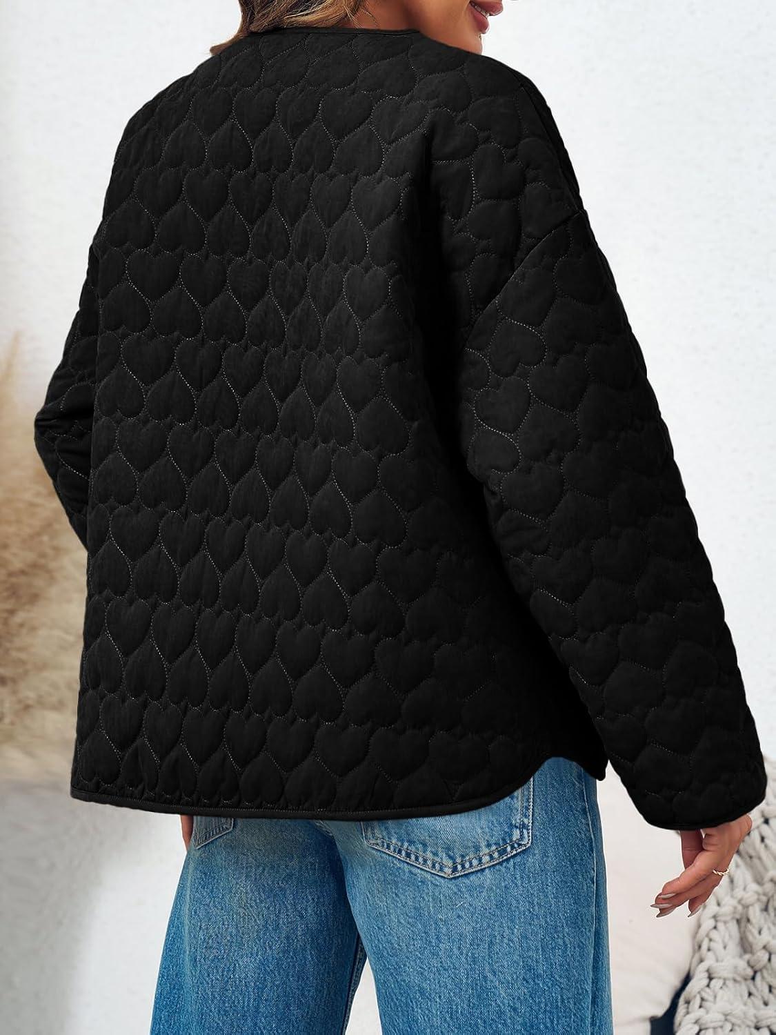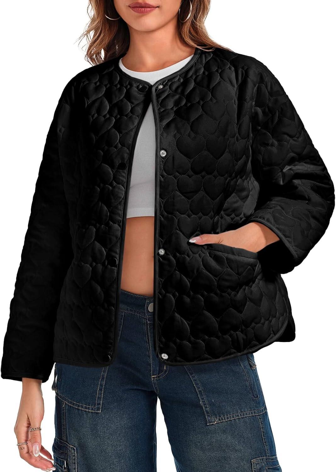 Tankaneo Womens Quilted Lightweight Jackets Winter Loose Fit Puffer Coat 2024 Fashion Outwear with Pockets(Black)