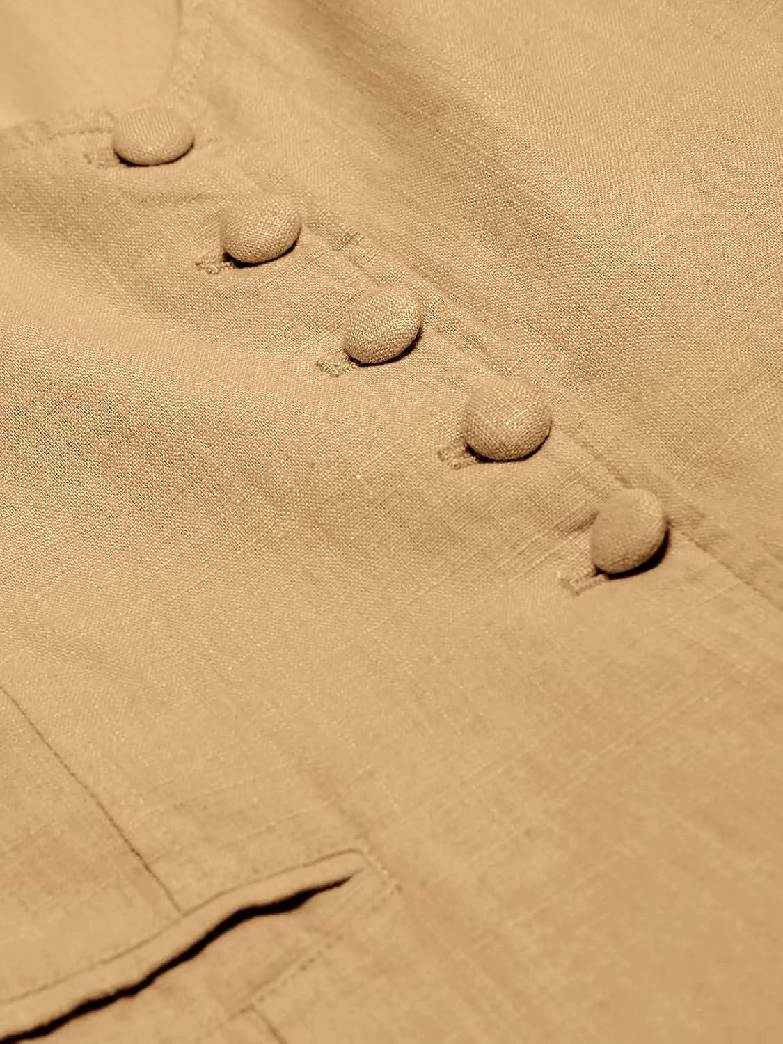 Tankaneo Womens Scoop Neck Blazer Vest Summer Linen Sleeveless Fitted Waistcoat Work Casual Cotton Suit Tops(Camel)