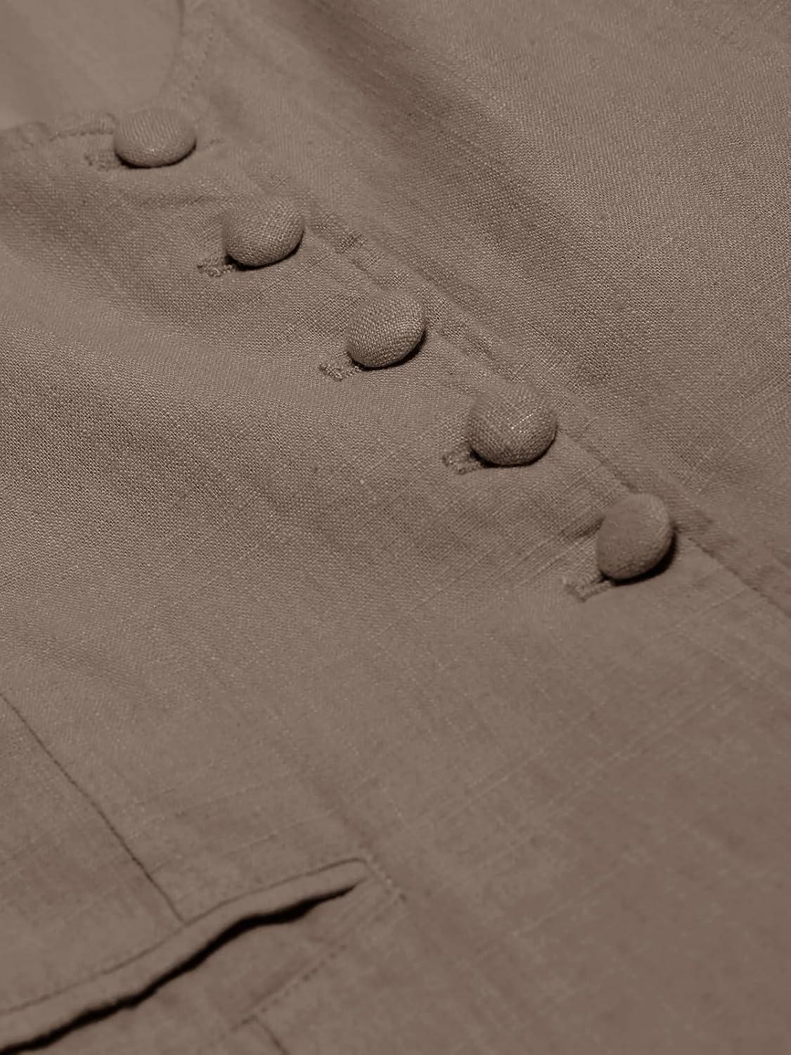 Tankaneo Womens Scoop Neck Blazer Vest Summer Linen Sleeveless Fitted Waistcoat Work Casual Cotton Suit Tops(Coffee)