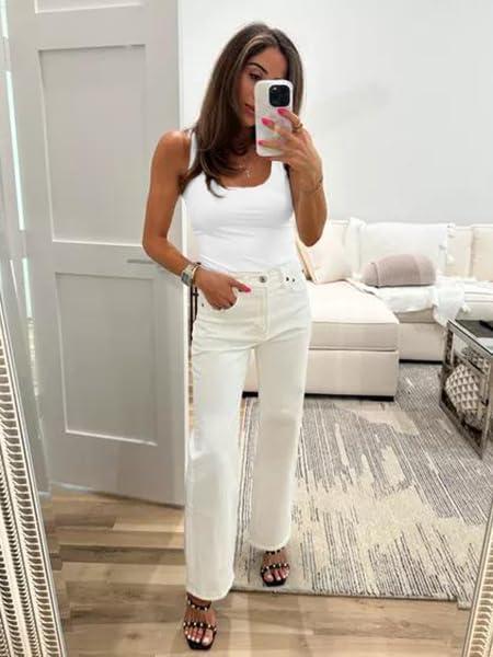 Tankaneo Womens Sexy Deep V Neck Top Sleeveless Backless Spaghetti Strap Tank Top Casual Basic Cami Top(White)