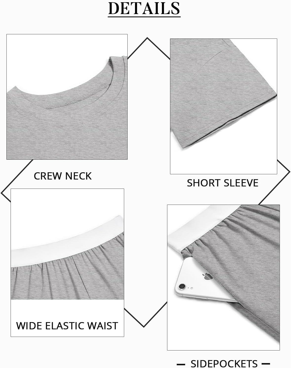 Tankaneo Womens Short Sets 2 Piece Summer Vacation Outfits Short Sleeve T-shirts Elastic Waist Shorts Matching Set(Light Grey)