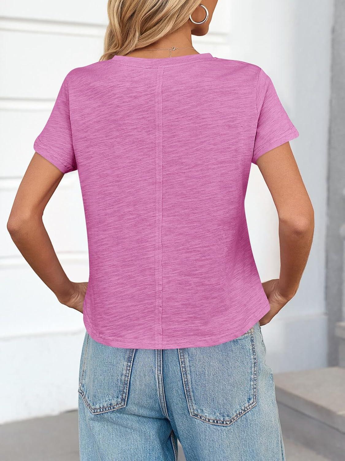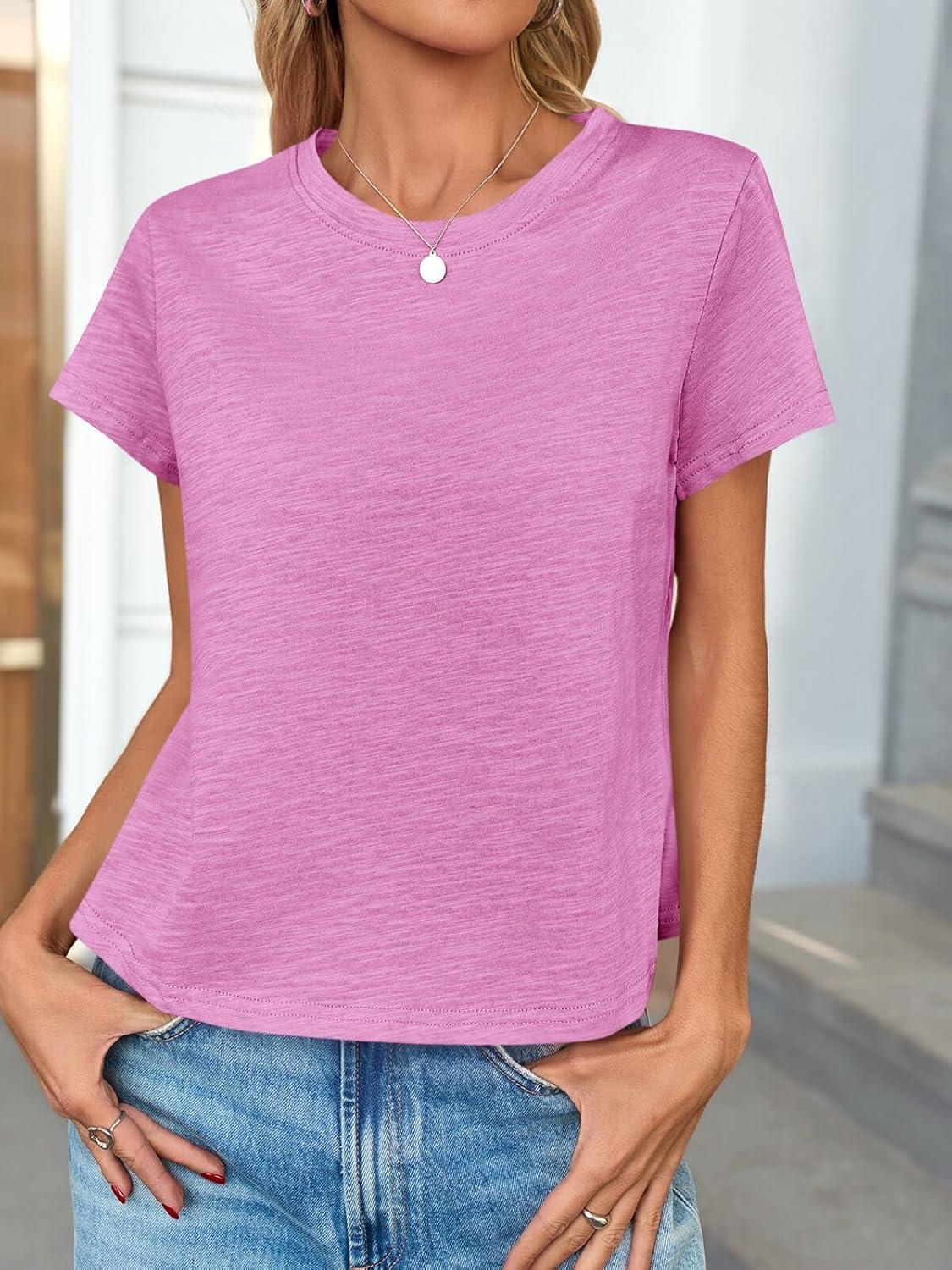 Tankaneo Womens Short Sleeve Tops Cropped Crew Neck Tshirts Casual Summer Cotton Boxy Tee Shirts(Pink)
