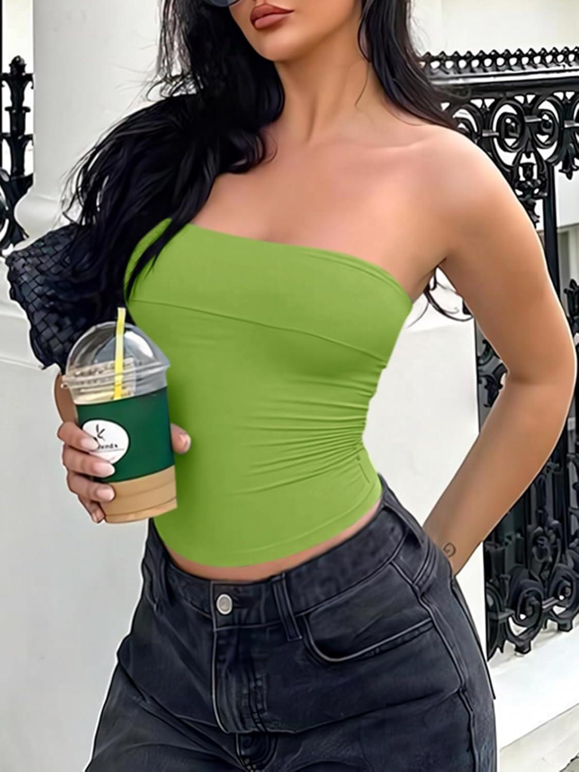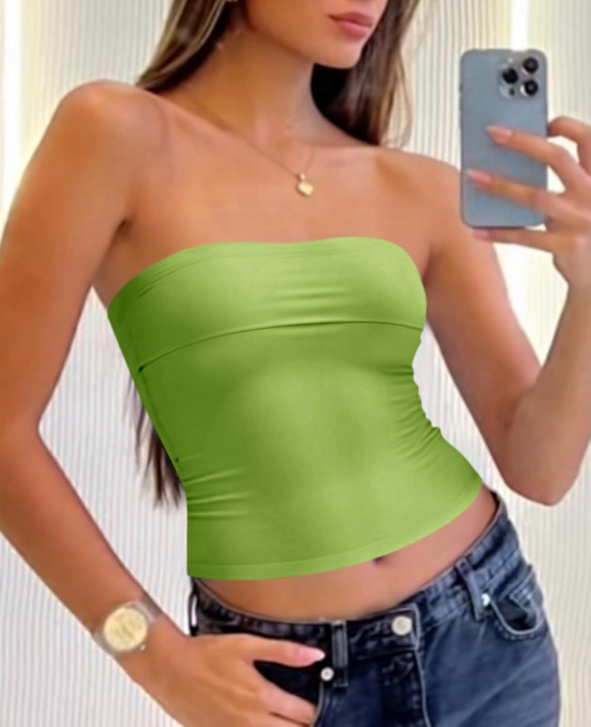 Tankaneo Womens Strapless Tube Tops Cropped Y2K Going Out Fitted Tank Tops Summer Trendy Layered Bandeau Shirts(Yellow&green)