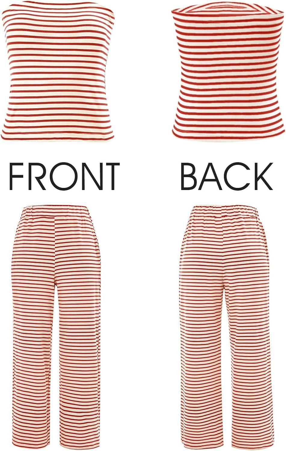 Tankaneo Womens Striped 2 Piece Sets Summer Strapless Crop Tube Tops Wide Leg Pants Matching Lounge Set Vacation Outfits(Orange)