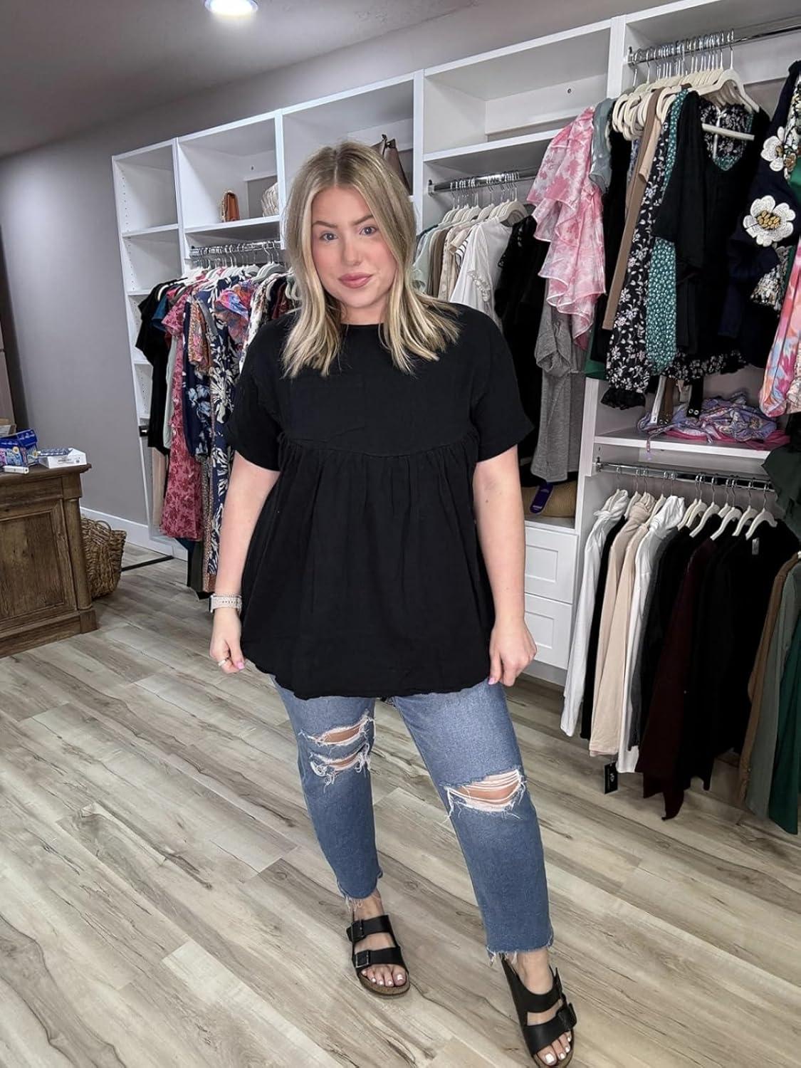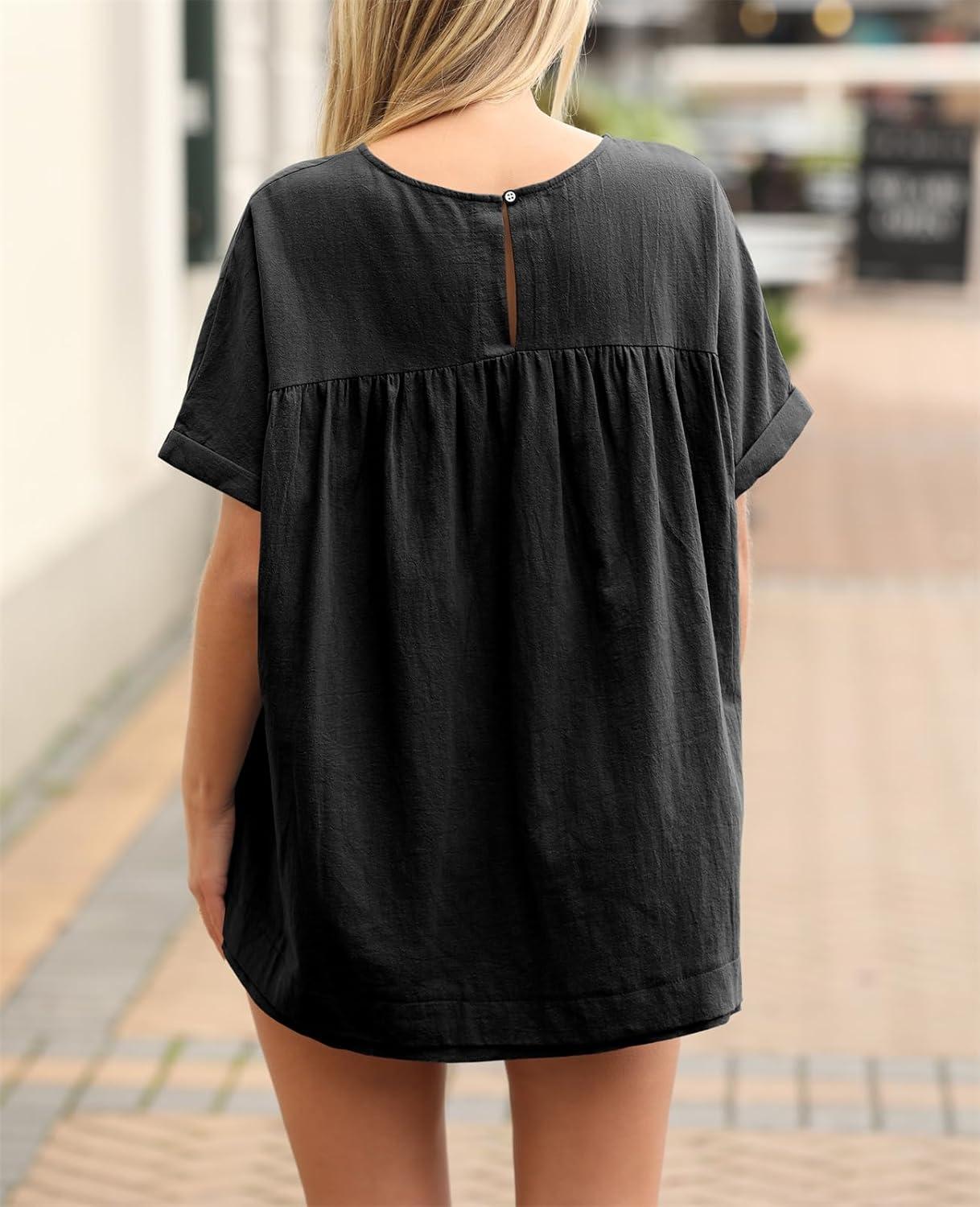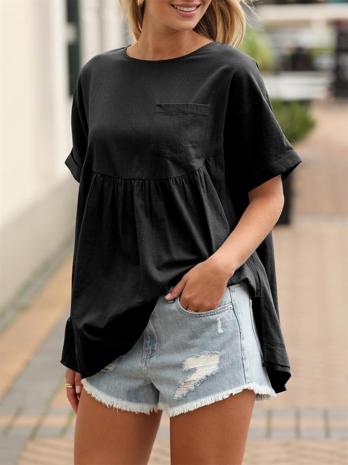 Tankaneo Womens Summer Babydoll Tops Casual Loose Fit Peplum Oversized Tunic Shirts(Black)