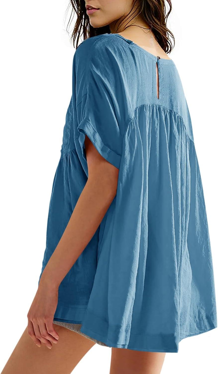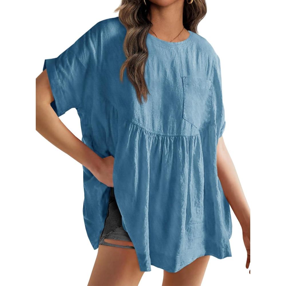 Tankaneo Womens Summer Babydoll Tops Casual Loose Fit Peplum Oversized Tunic Shirts(Blue)