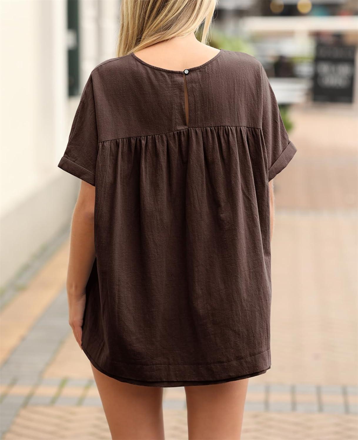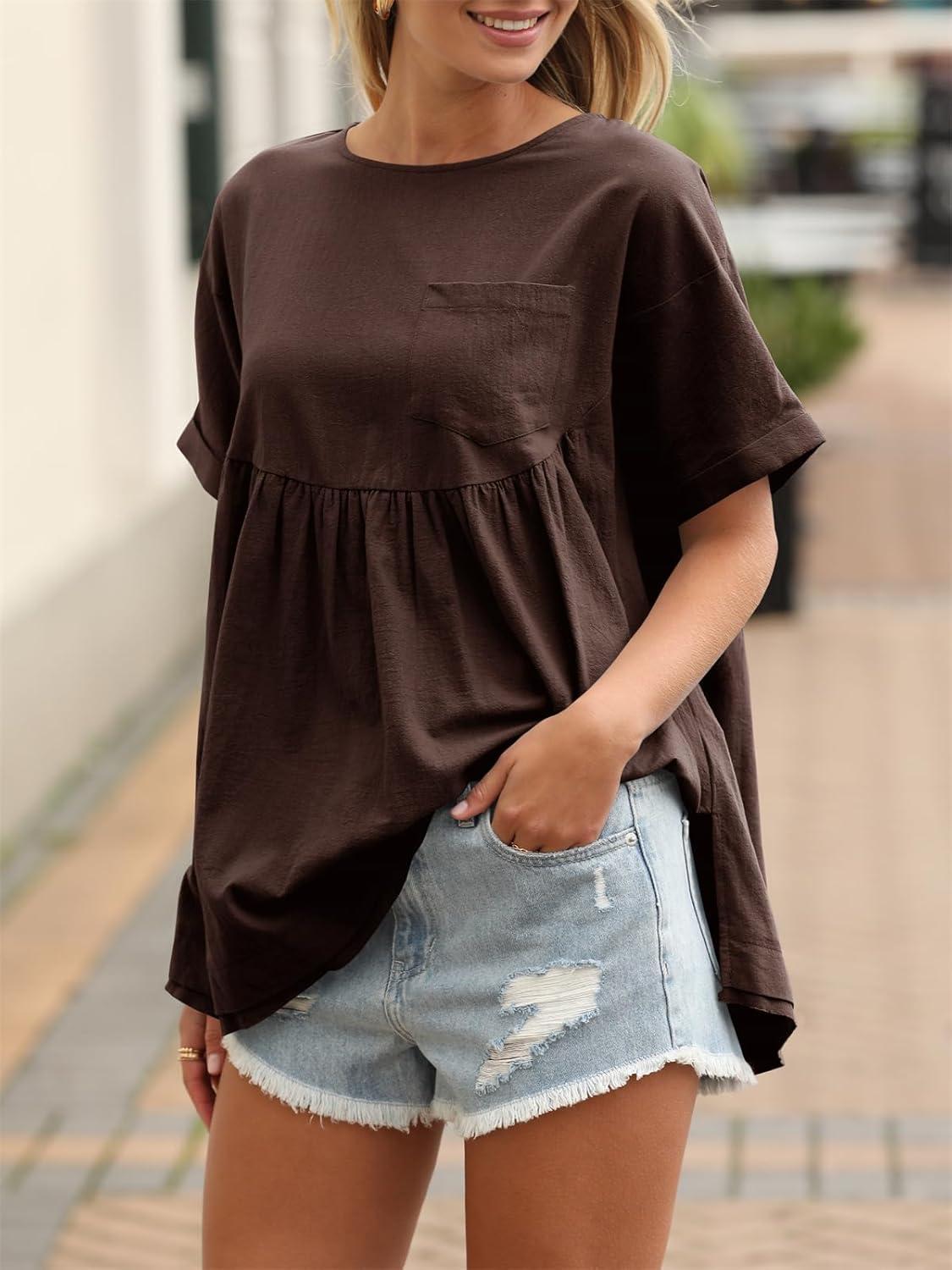 Tankaneo Womens Summer Babydoll Tops Casual Loose Fit Peplum Oversized Tunic Shirts(Brown)
