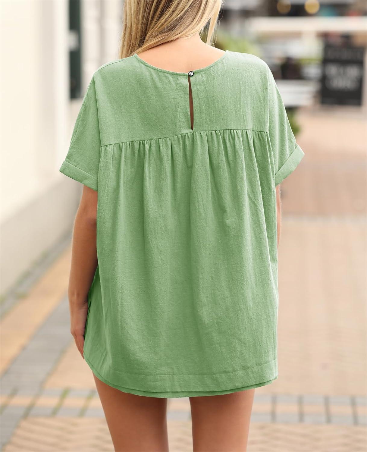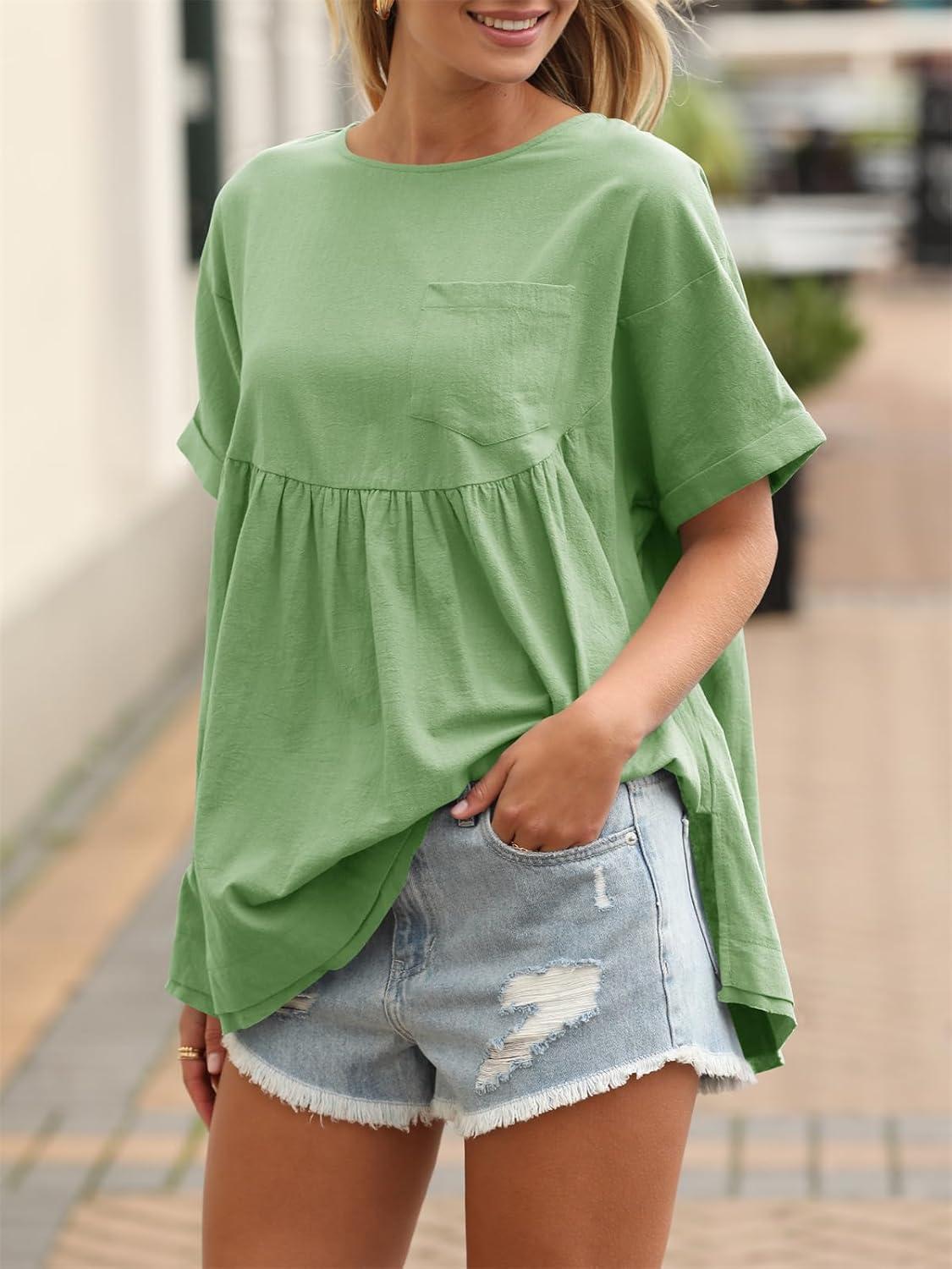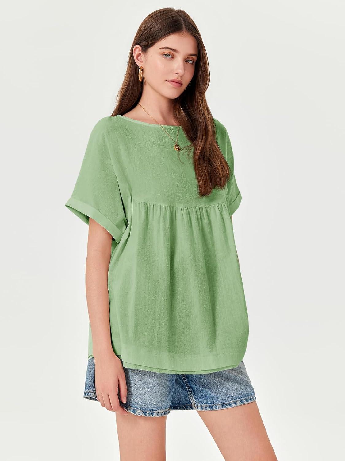 Tankaneo Womens Summer Babydoll Tops Casual Loose Fit Peplum Oversized Tunic Shirts(Matcha Green)