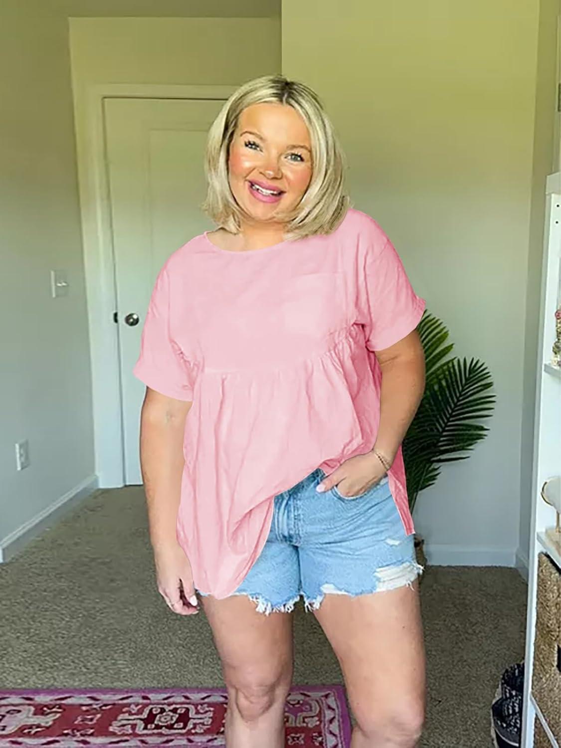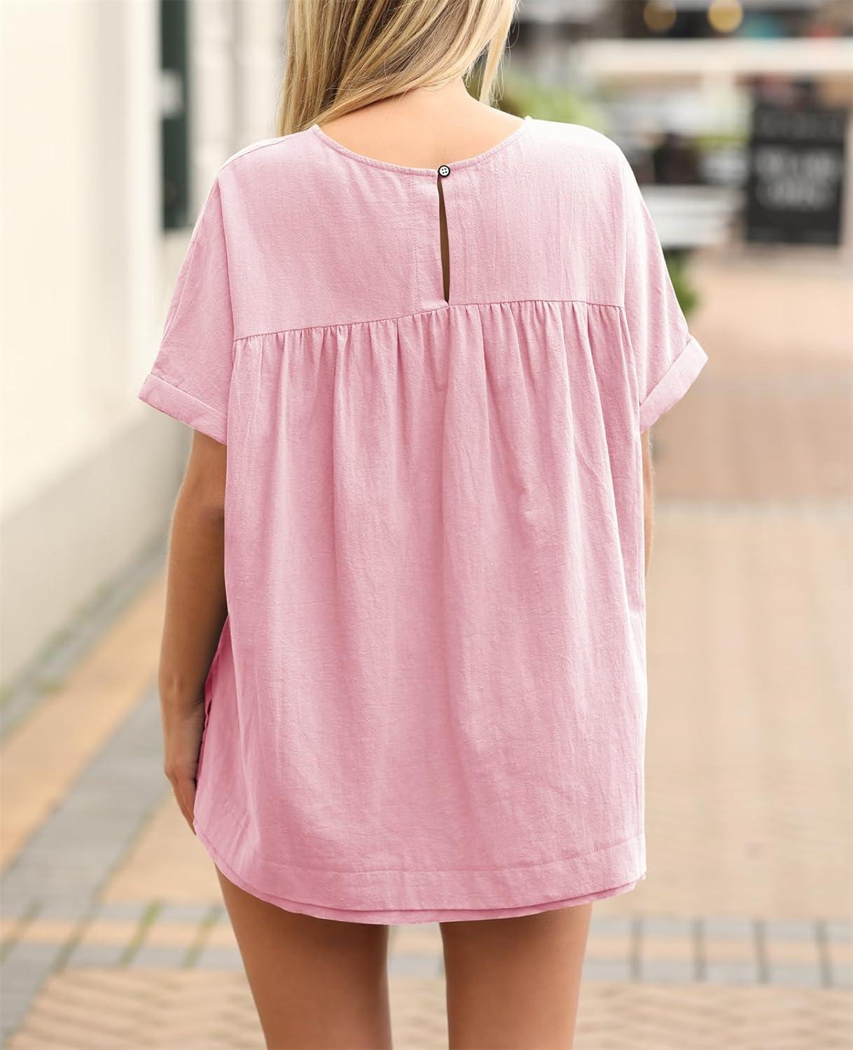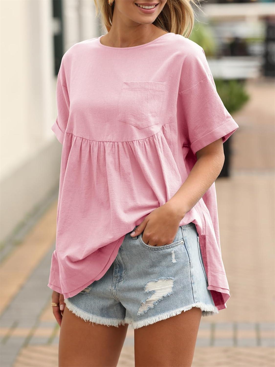 Tankaneo Womens Summer Babydoll Tops Casual Loose Fit Peplum Oversized Tunic Shirts(Pink)