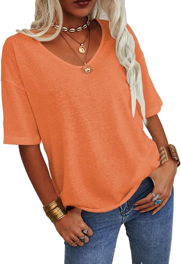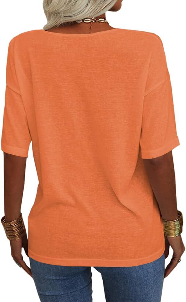 Tankaneo Women’s Summer Fashion V-Neck Half Sleeves T Shirt Solid Casual Loose Basic Tunics Tops(Orange)