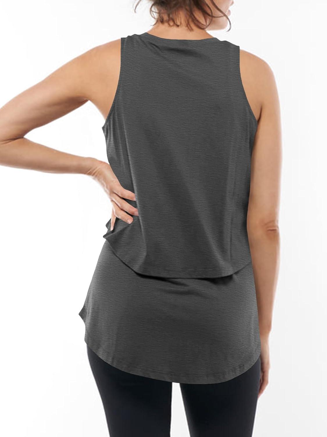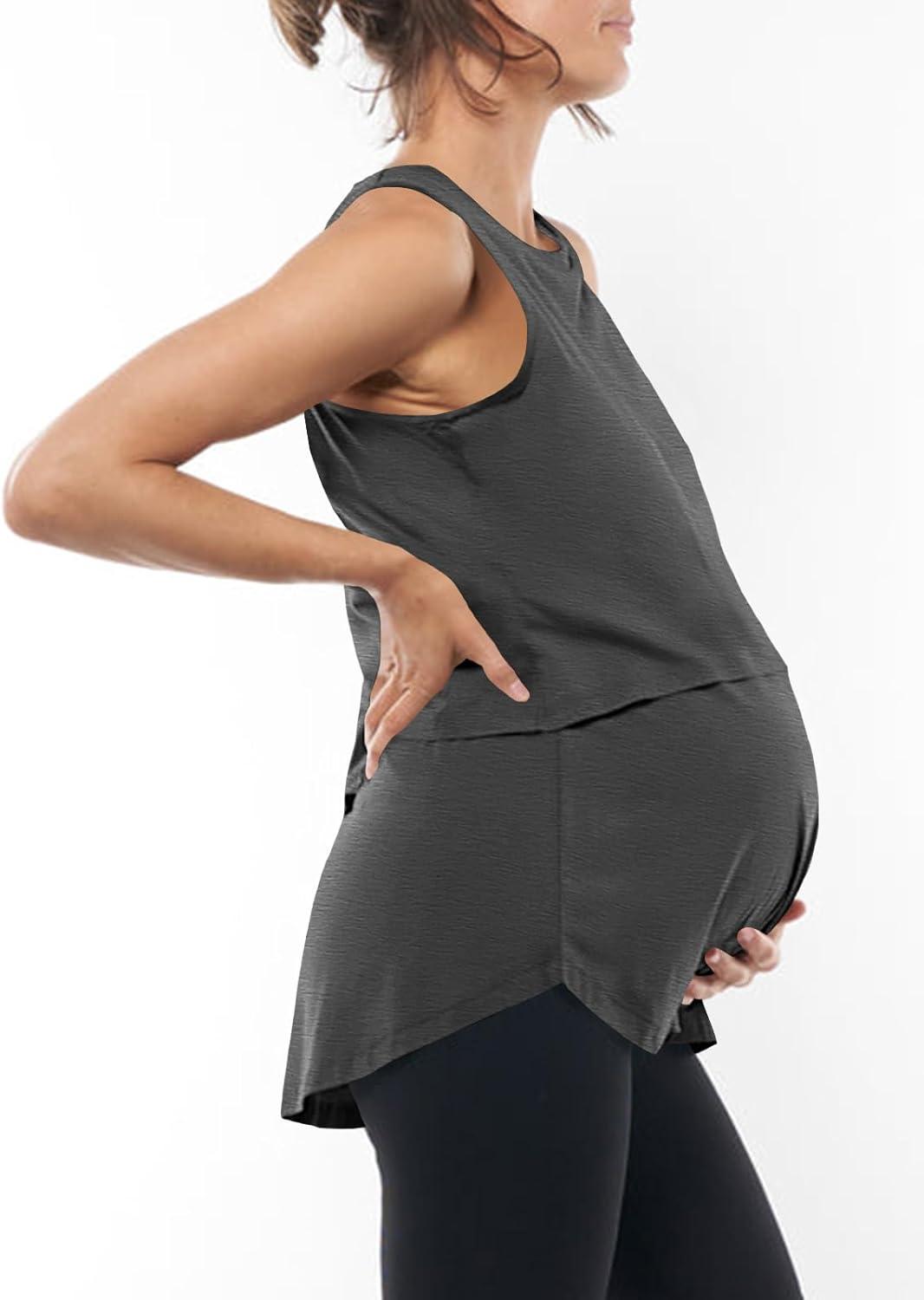Tankaneo Womens Summer Maternity Nursing Tank Tops Sleeveless Double Layer Breastfeeding Shirt Pregnancy Clothes(Dark Grey)
