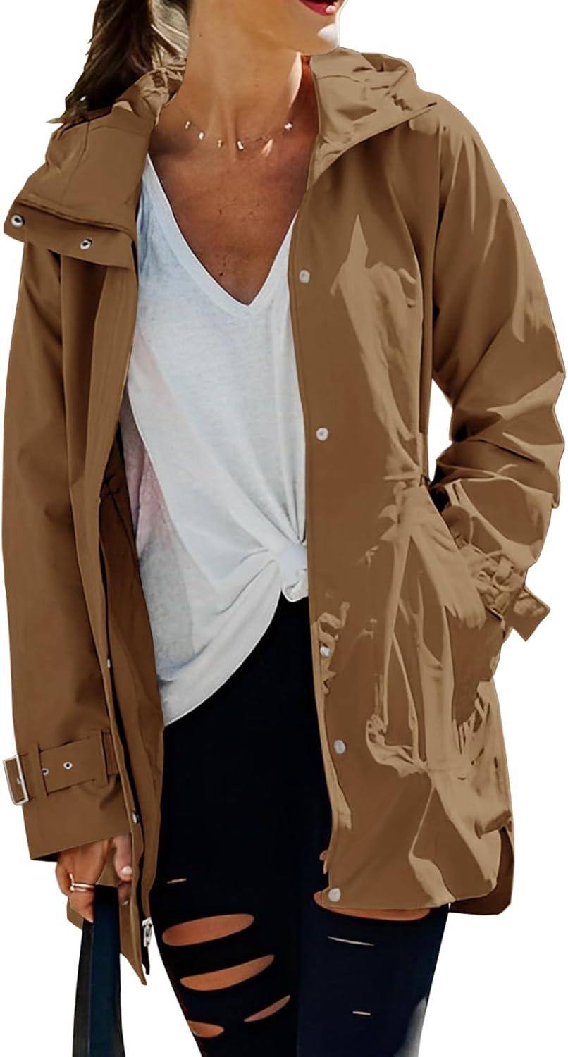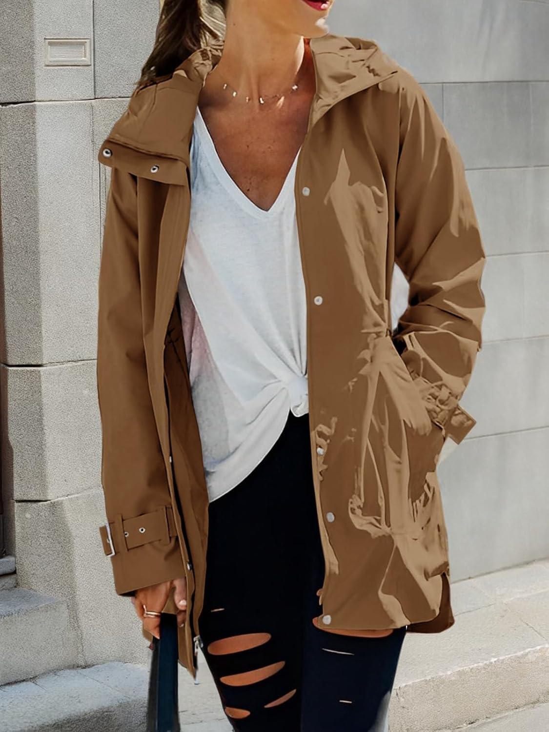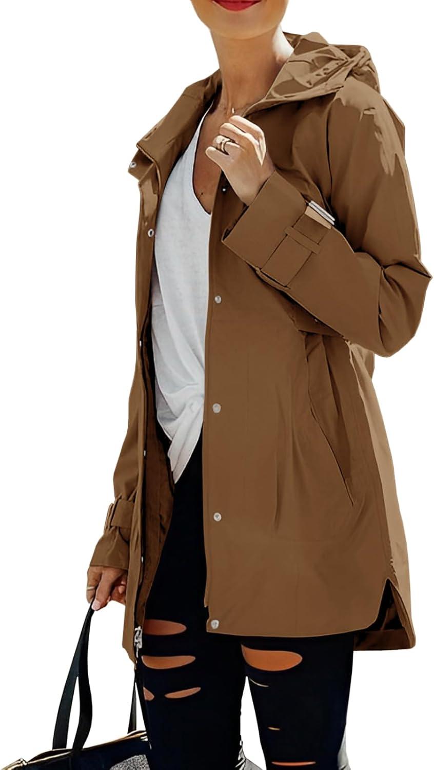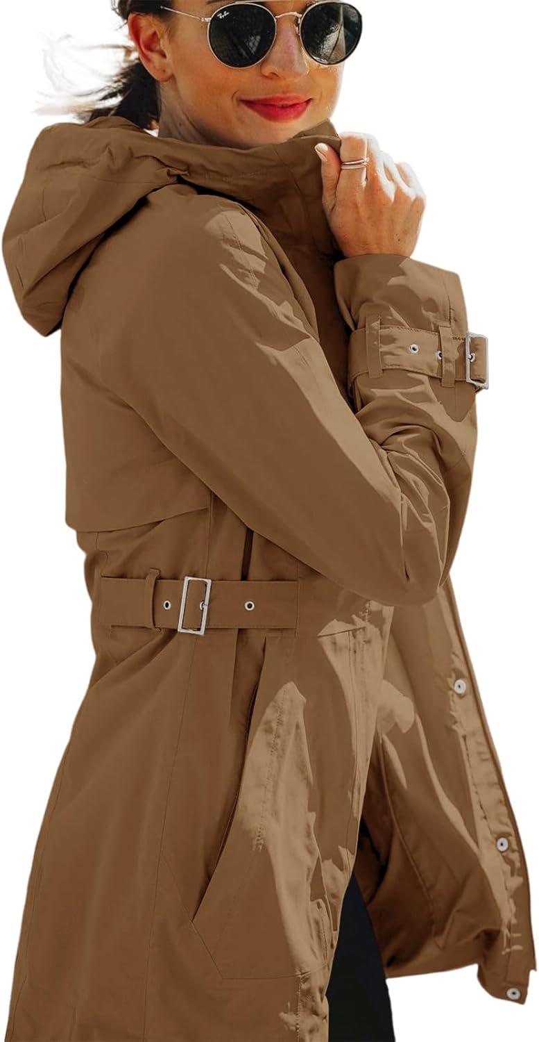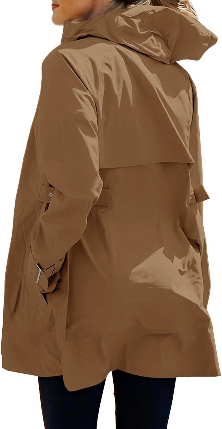 Tankaneo Women’s Trench Coat Zip Up Long Sleeve Hooded Jacket Casual Windproof Outwear with Pockets(Brown)