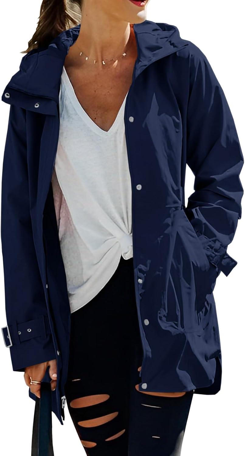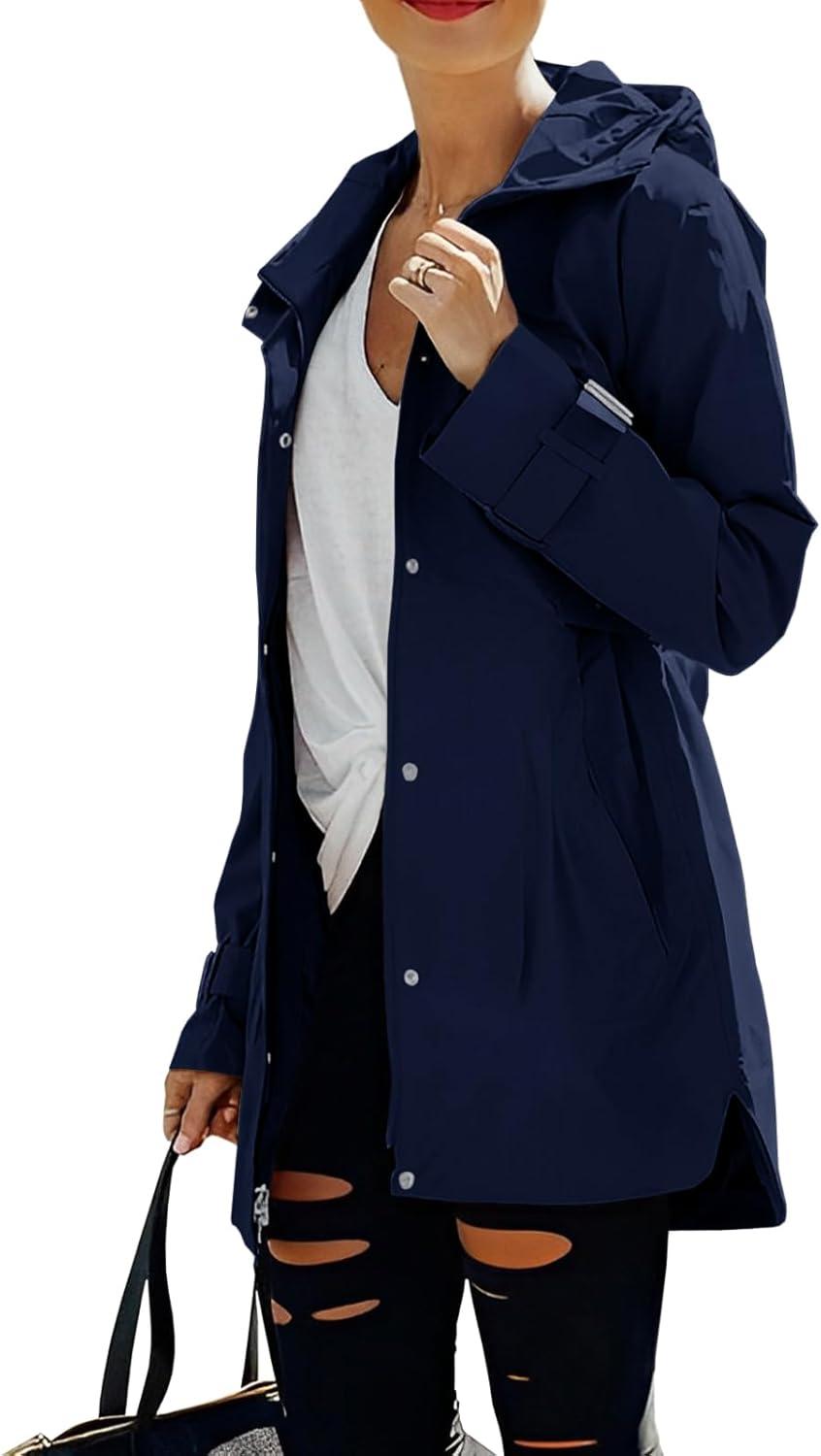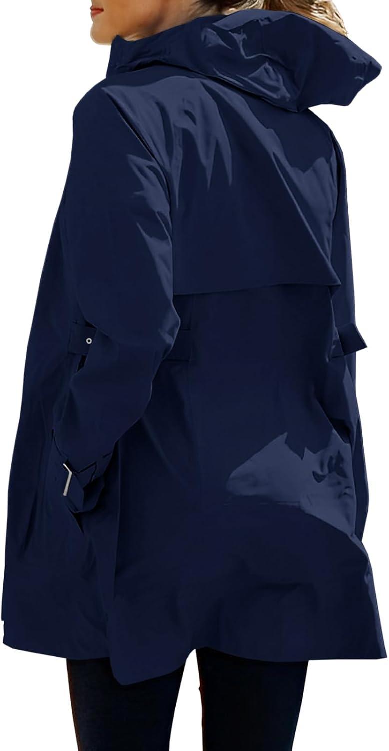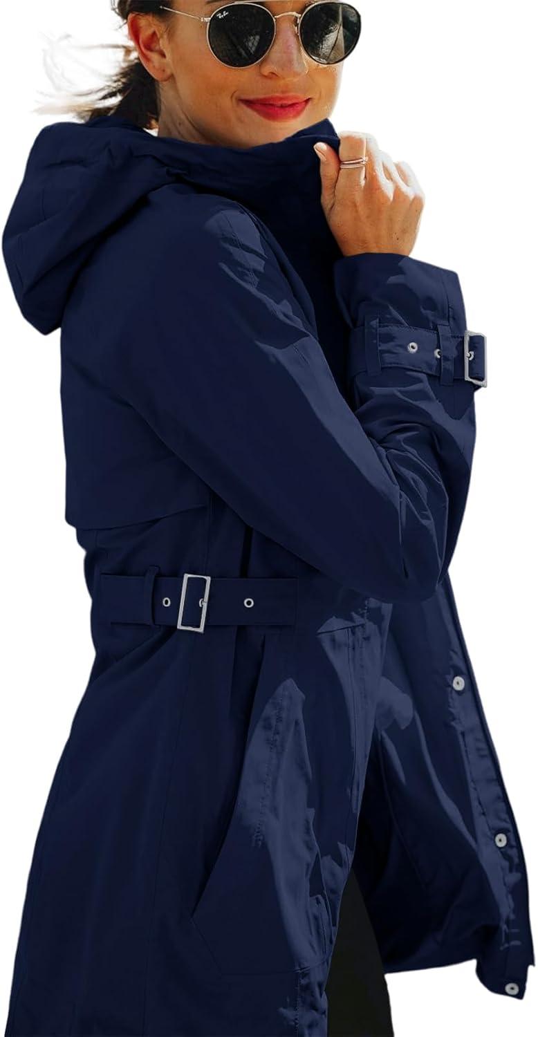 Tankaneo Women’s Trench Coat Zip Up Long Sleeve Hooded Jacket Casual Windproof Outwear with Pockets(Navy)