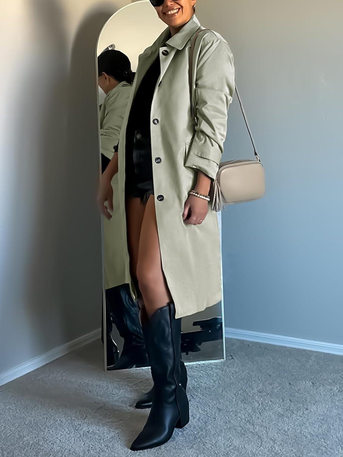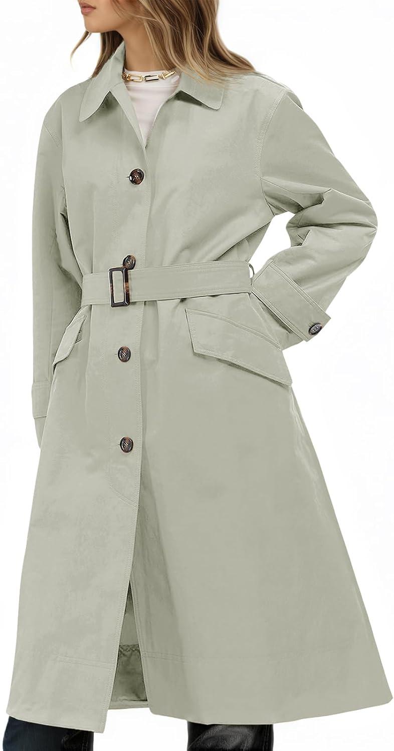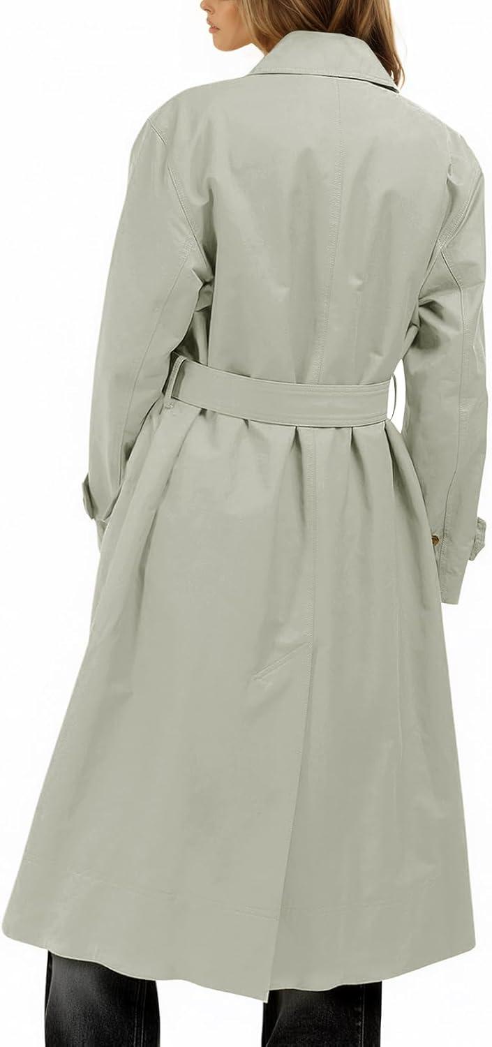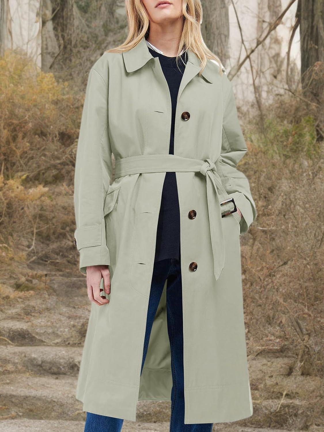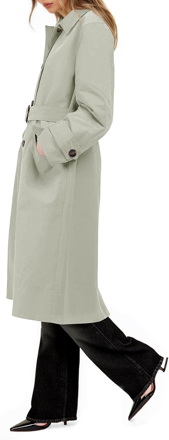 Tankaneo Womens Trench Coats Single Breasted Long Windproof Overcoat with Pockets and Belt(Grey)