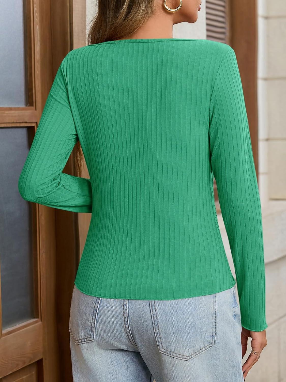 Womens Cardigans Button Down Long Sleeve Ribbed Shirts Cute Lighweight Fitted Y2K Fall Tops(Green)